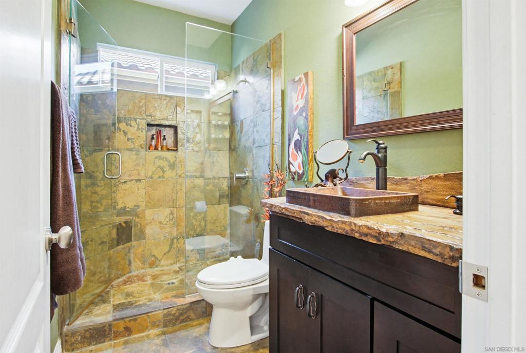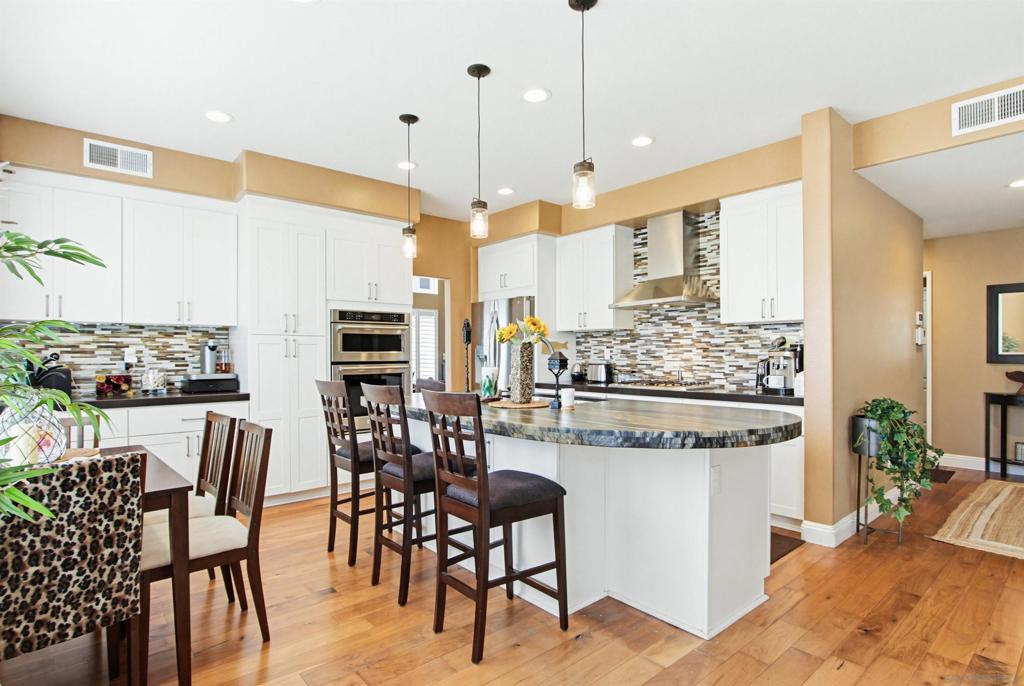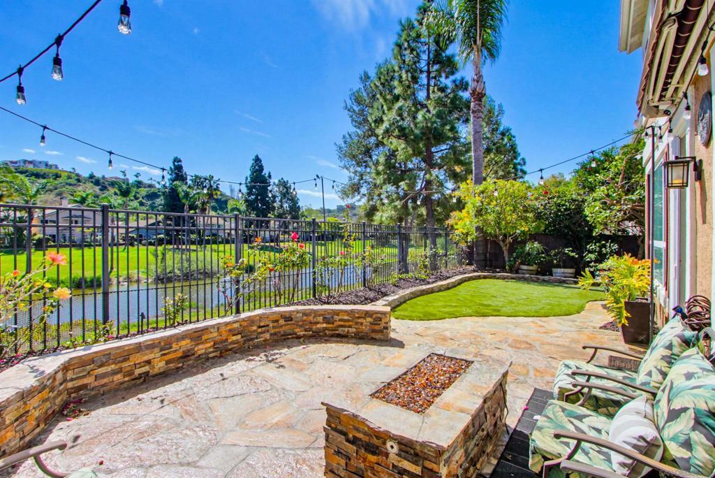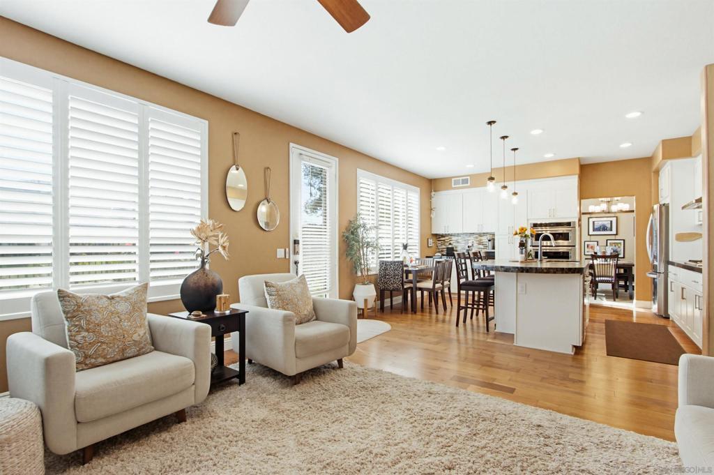 Welcome to this stunning home in the prestigious Carmel Valley community of Palacio Del Mar. Located across the creek from the 9th hole, experience relaxing views of nature from the living room, dining room, kitchen, and primary bedroom. Or open your front door and go for a walk or bike ride on one of San Diego’s best paved trails. Inside you’ll find a bright, welcoming home remodeled with designer finishes, custom cabinetry, and high-end appliances. Wide plank flooring, high ceilings, and an open floor plan. The main floor includes a downstairs bedroom, central heat and air conditioning, a chef’s kitchen with cleverly built in appliances, quartz countertops and a contrasting granite island. Expansive living and dining areas provide plenty of room for entertaining. Upstairs you’ll find the spacious primary suite with more views, high ceilings, and a walk-around closet, 2 additional bedrooms, a guest bathroom, and a large extra playroom or office. See supplement. The large 3 car garage has plenty of space for your vehicles and toys. Custom garage floor is easy to clean and maintain. A whole house extractor fan works wonders to keep the house cool efficiently without needing to power up the central air system. Easy attic entry via a built in foldable ladder provides even extra storage space or convenient access for maintenance. Palacio Del Mar feels like a resort with all of it's amenities; gated community with on-site guard, pools, clubhouse, 9 hole golf course, tennis, and pickleball courts, biking and hiking trails. Located near top-rated schools, beaches, shopping, dining and movies at Del Mar Highlands and the newer One Paseo.