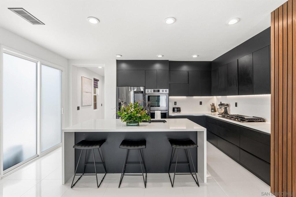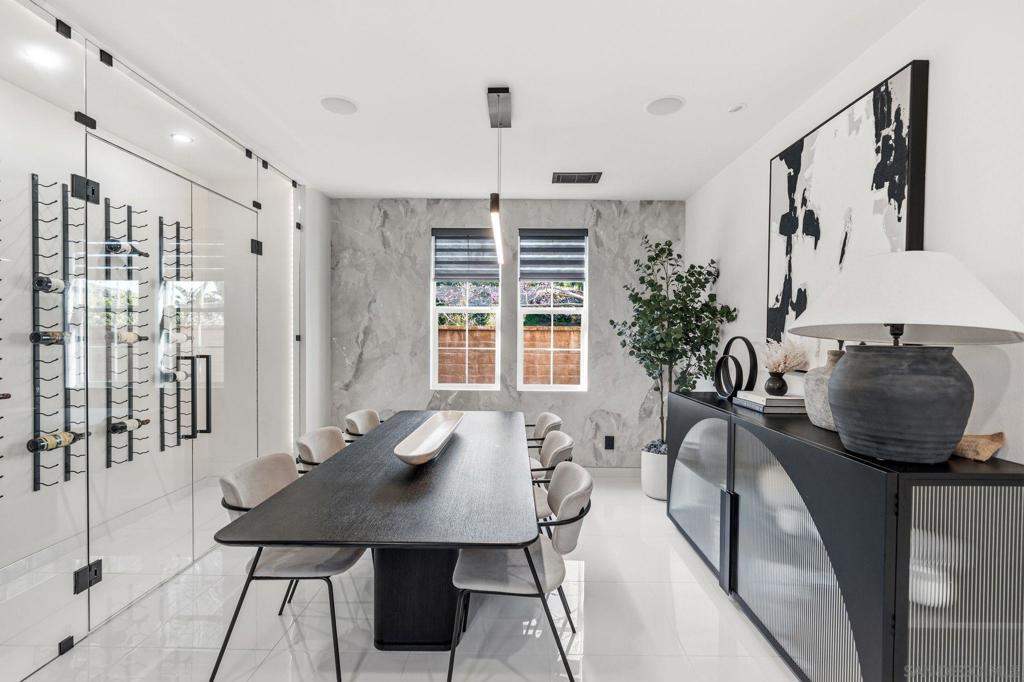 A showpiece of modern luxury with a Private Saltwater Pool, this fully reimagined residence is tucked on a private corner cul-de-sac in the prestigious La Costa community of Carlsbad. Designed for elevated living and effortless entertaining, the home offers three spacious en-suite bedrooms plus a versatile loft, playroom, and additional den ideal for a home office, gym, or media lounge. At the heart of the home, the designer chef’s kitchen features a dramatic stone waterfall island, sleek custom cabinetry, and premium black-finish appliances. Sophisticated materials and architectural details carry throughout, including imported Italian tile and striking Brazilian granite feature walls that create a refined, contemporary aesthetic. The spa-inspired primary suite offers a serene retreat with a deep soaking tub and luxurious finishes. Outdoors, a tranquil resort-style backyard awaits with a sparkling pool and beautifully designed spaces for relaxing or entertaining. Additional highlights include Owned Solar, a custom wine cellar, and fully integrated sound and security systems delivering a rare blend of modern design, privacy, and technology. Ideally located in Carlsbad within a private enclave of just 53 homes, this sophisticated coastal residence offers the best of North County living just minutes from the beach, world-class golf, dining, and shopping. Luxury modern pool home in the highly sought-after La Costa community in Carlsbad, one of North County San Diego’s premier coastal cities known for its beaches, golf, lifestyle, and top-rated schools. Ideally located just minutes from Carlsbad Village, Batiquitos Lagoon, and the beaches along the Carlsbad State Beach, this home offers the best of coastal Southern California living. Residents enjoy close proximity to championship golf at Omni La Costa Resort & Spa, scenic hiking and biking trails, upscale dining, boutique shopping, and convenient access to major tech and biotech employment hubs throughout North County. The fully remodeled residence features 3 en-suite bedrooms plus a loft, playroom, and additional den, offering exceptional flexibility for modern living. The designer chef’s kitchen showcases a striking waterfall island, custom cabinetry, and high-end black finish appliances. Luxury materials including Italian tile and Brazilian granite feature walls elevate the home’s contemporary design. The spa-inspired primary suite offers a deep soaking tub and serene retreat. Outdoors, a private resort-style backyard features a pool, spa, and beautifully designed entertaining areas. Additional highlights include whole-house solar, wine cellar, and integrated sound and security systems. An exceptional opportunity to own a turnkey luxury home in one of Carlsbad’s most desirable coastal communities.