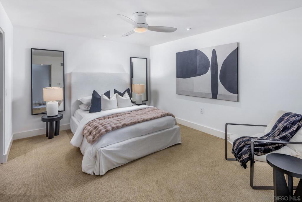 A refined architectural residence in La Jolla Shores just moments from beach access and capturing breathtaking panoramic ocean views. Featured in San Diego Home & Garden and built by Hill Construction, the home pairs strong design with thoughtful, highly functional living. The main level offers true single-level convenience, with living, dining, family room, kitchen, office, and primary suite all seamlessly connected. Thirteen sets of solid mahogany French doors open to both an expansive ocean-view deck and a protected interior courtyard, creating exceptional indoor-outdoor flow. Galala limestone flooring extends throughout the main level, courtyard, and pool deck, complemented by custom cabinetry with book-matched fumed eucalyptus, black granite countertops in the kitchen, and Navona travertine in the primary bath. The lower level provides four private bedroom suites, each with its own bath, along with a spacious common room and access to a patio with hot tub - ideal for guests or multigenerational living. A vanishing-edge pool with resistance jets by Mission Pools anchors the backyard, while fenced yard spaces, a dog run with direct access, four private parking spaces, and a generous two-car garage complete this thoughtfully executed coastal retreat.