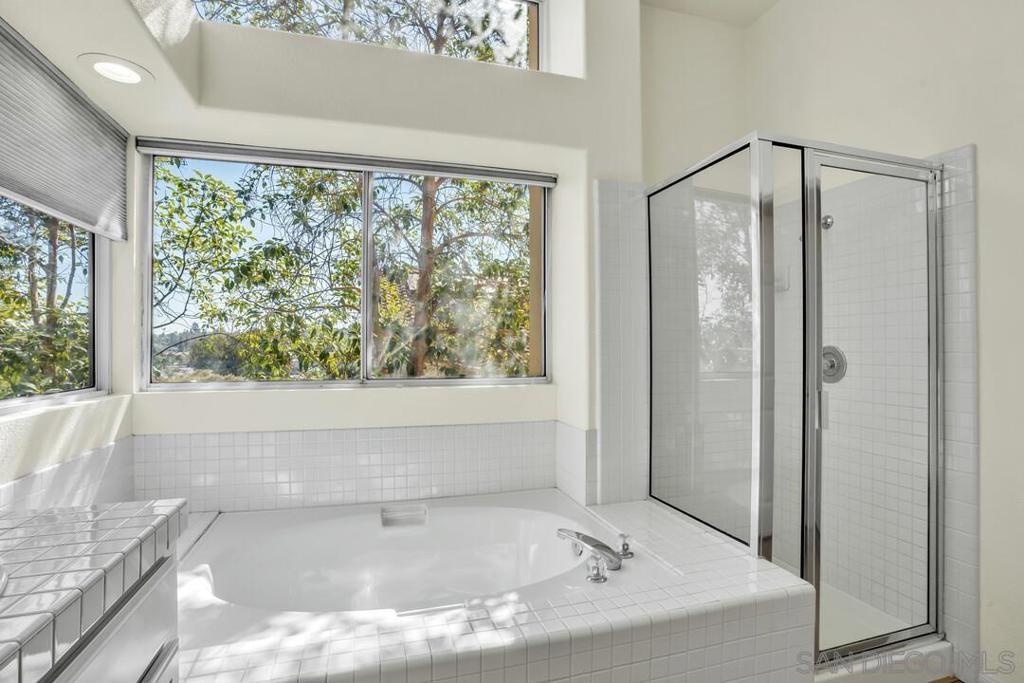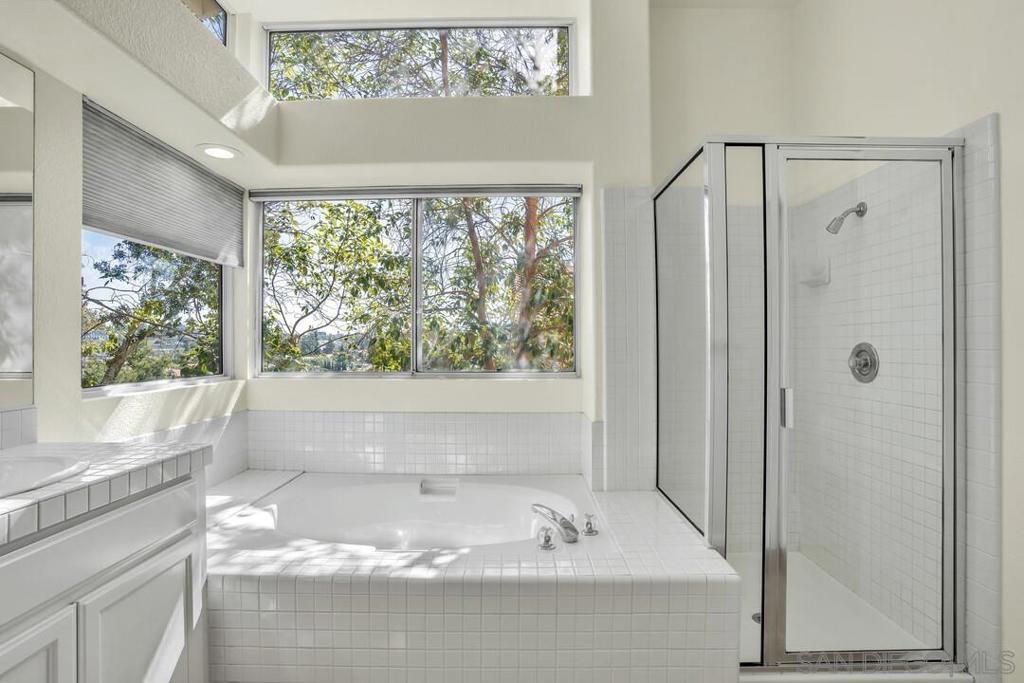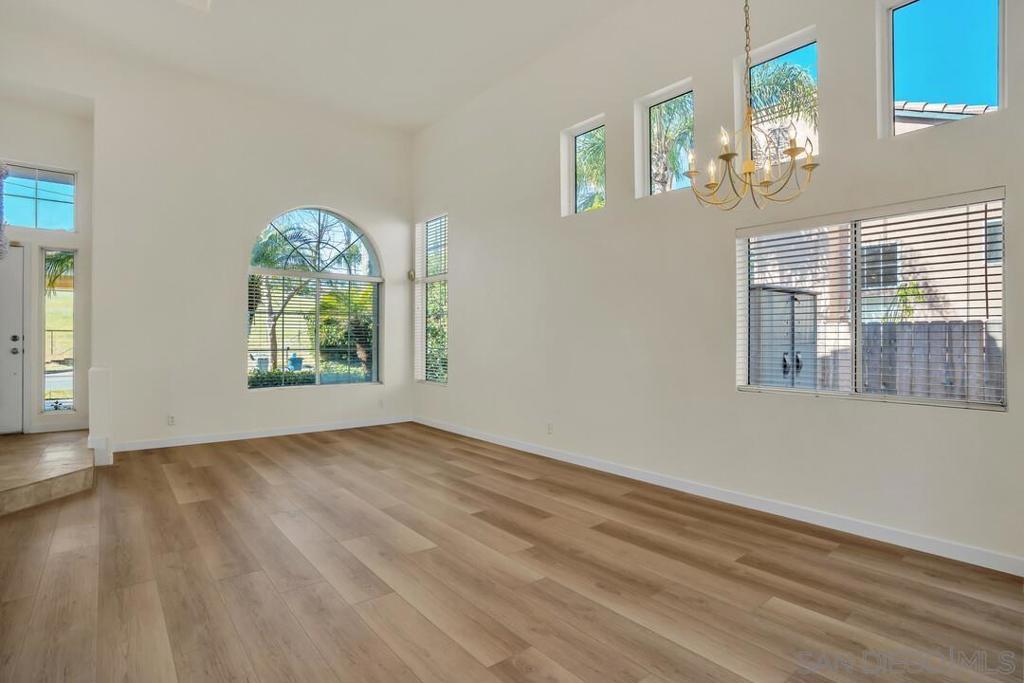 Highly sought-after Southwest Escondido home with no HOA! This beautifully appointed residence welcomes you with dramatic ceilings, expansive windows, and multiple skylights that fill the home with natural light, creating a bright and open atmosphere throughout. Offering approximately 2,300 sq ft, this spacious home features 4 bedrooms and 3 full bathrooms, including a full bedroom and bathroom on the main level, ideal for multigenerational living, guests, or a private home office. The large kitchen showcases refinished cabinetry, a gas cooktop, and abundant counter and cabinet space, seamlessly opening to the inviting family room with a cozy fireplace—perfect for everyday living and entertaining. Upstairs, the generous primary suite features double-door entry, a walk-in closet, dual sinks, a soaking tub, and a separate shower. Two additional spacious bedrooms share a convenient Jack-and-Jill bathroom. Step outside to a serene backyard with a park-like setting, complete with a peaceful seating area and scenic views—an ideal space to relax or entertain. Recent updates include new luxury vinyl plank flooring, new carpet, and fresh interior paint. The home also offers a spacious 3-car garage for ample parking and storage. Conveniently located in a highly desirable area, this home is within walking distance to public transit and major retailers, including Albertsons, Target, Home Depot, restaurants, gas stations, and more—offering both comfort and exceptional accessibility.