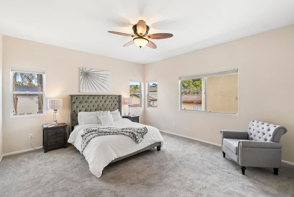 Beautiful 5-bedroom, 3-bath home in the highly desirable Rolling Hills Ranch community featuring vaulted ceilings, a versatile floor plan with a bedroom and full bath on the main level, and a private backyard ideal for indoor-outdoor living. This well-maintained residence offers approximately 2,447 square feet of comfortable living space filled with natural light and enhanced by 9-foot ceilings throughout. The spacious kitchen with center island and dining nook opens seamlessly to the main living areas, creating an inviting setting for both everyday living and entertaining. An oversized front bedroom offers flexible space ideal for a game room, office, or additional living area. Additional highlights include a separate laundry room and a three-car garage with individual access doors. The backyard features a patio and paved side access, providing a comfortable outdoor space to relax and enjoy Southern California’s year-round climate. Rolling Hills Ranch is known for its scenic surroundings and exceptional resort-style community amenities, including pools, parks, hiking trails, and the 29-acre Montevalle Recreation Center and Mackenzie Creek Park. This well-established South Bay community is appreciated for its hillside setting, thoughtfully planned neighborhoods, top-rated schools, and convenient access to shopping, dining, and major freeways. Low HOA of approximately $199 per month and no Mello-Roos add to the home’s overall value. Rolling Hills Ranch is one of East Chula Vista’s most established master-planned communities, known for its open space, parks, and extensive trail system.Rolling Hills Ranch is known for its scenic surroundings and extensive open space. Residents enjoy access to neighborhood pools, parks, walking and hiking trails, and the 29-acre Montevalle Recreation Center. The community also offers convenient access to Mackenzie Creek Park and nearby outdoor recreation areas.