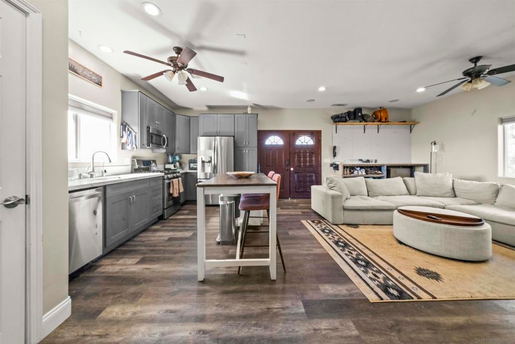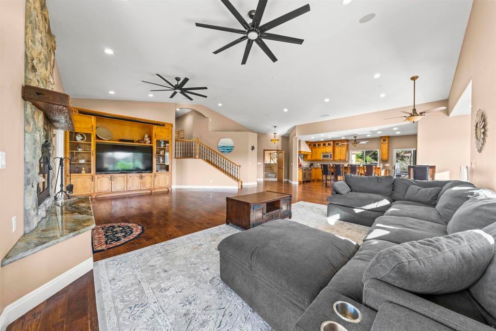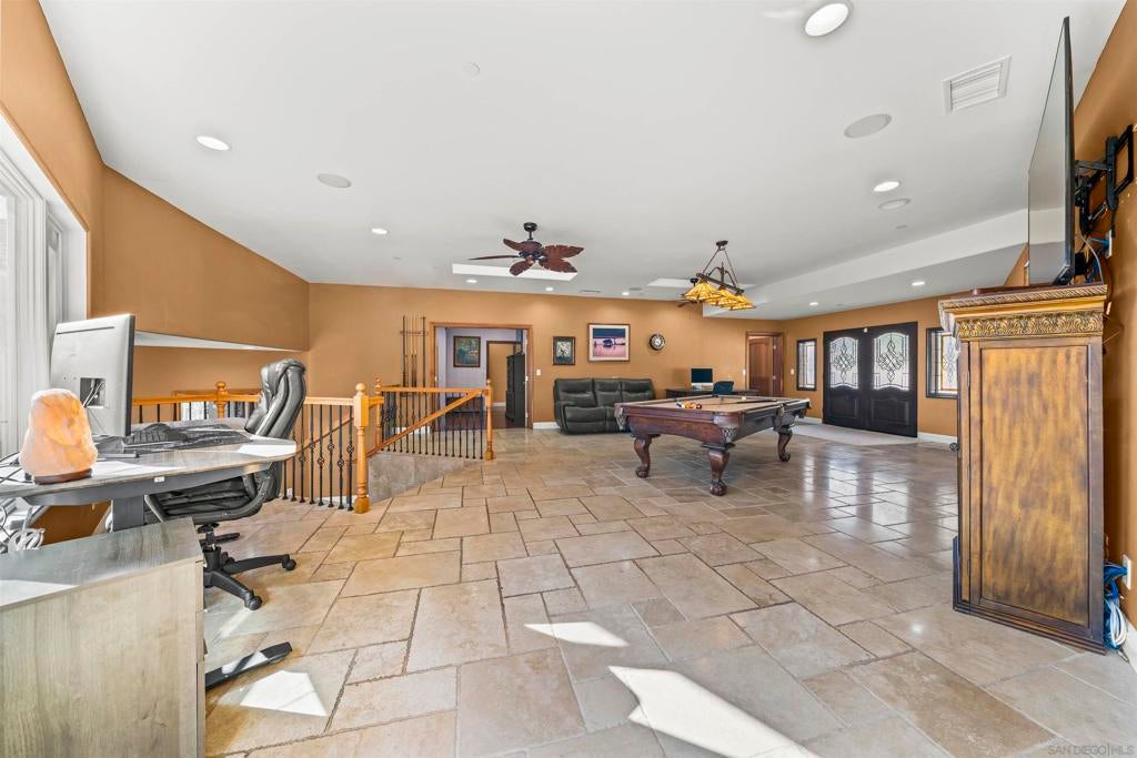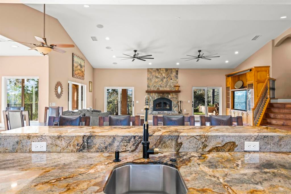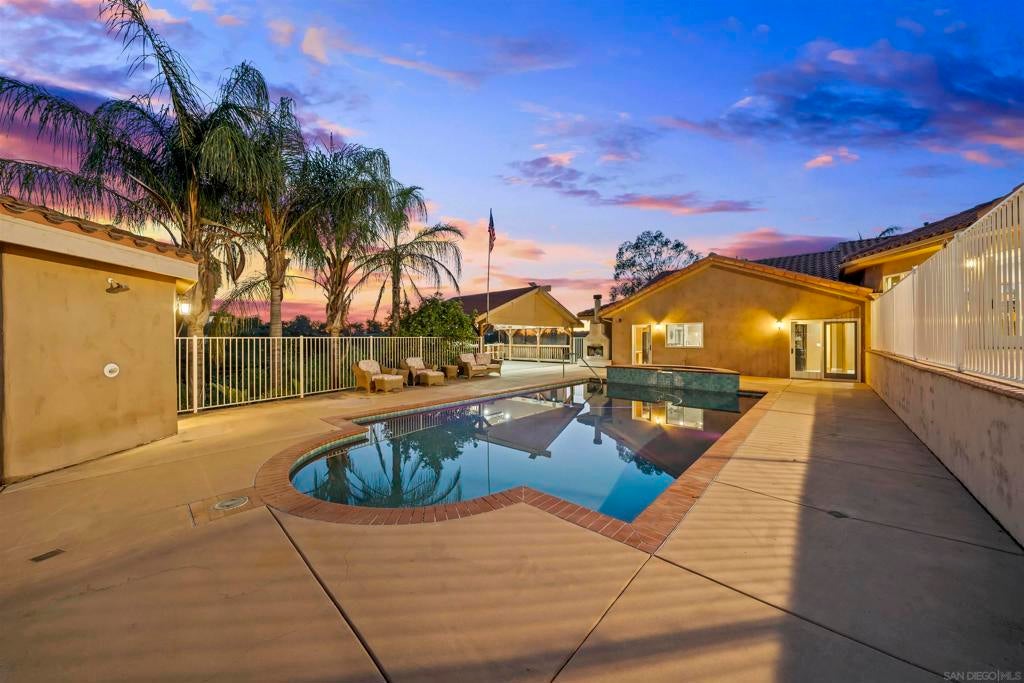 Recently repositioned to offer exceptional value, this 5.59-acre estate compound in Las Luces Del Cielo presents a rare opportunity for acreage, privacy, and multi-structure living in Poway. Built in 2008, the 3,340-square-foot main residence features an open-concept layout with hardwood and travertine flooring, generously sized bedroom suites, and seamless indoor-outdoor flow framed by sweeping hillside views. Designed for entertaining at scale, the backyard includes a saltwater pool and spa, detached pool room with bath, and a custom cabana deck with built-in bar, BBQ, sink, refrigerator, clear-ice maker, and covered lounge space. The cabana is pre-plumbed for gas heaters, and the pool area also features an outdoor shower. A permitted 2-bedroom, 2-bath guest residence (1,089 sq ft), built in 2013, sits separate from the main home, ideal for multigenerational living, extended guests, or a private office. A detached garage structure (780 sq ft, built in 2013) has been fully finished as a 1-bedroom, 1-bath living space with kitchen, providing additional flexibility while remaining permitted as a garage. The acreage offers exceptional utility with permitted covered RV parking, workshop, outbuildings, and ample space for recreation, storage, or future expansion. Conduit has been installed for a future ground-mount solar system. No HOA. No Mello-Roos. Located within the Poway Unified School District. Properties in Las Luces Del Cielo offering this combination of acreage, privacy, and multi-structure versatility rarely become available. Recently repositioned to offer exceptional value, this 5.59-acre estate compound in Las Luces Del Cielo presents a rare opportunity for acreage, privacy, and multi-structure living in Poway. Built in 2008, the 3,340-square-foot main residence features an open-concept layout with hardwood and travertine flooring, generously sized bedroom suites, and seamless indoor-outdoor flow framed by sweeping hillside views. Designed for entertaining at scale, the backyard includes a saltwater pool and spa, detached pool room with bath, and a custom cabana deck with built-in bar, BBQ, sink, refrigerator, clear-ice maker, and covered lounge space. The cabana is pre-plumbed for gas heaters, and the pool area also features an outdoor shower. A permitted 2-bedroom, 2-bath guest residence (1,089 sq ft), built in 2013, sits separate from the main home, ideal for multigenerational living, extended guests, or a private office. A detached garage structure (780 sq ft, built in 2013) has been fully finished as a 1-bedroom, 1-bath living space with kitchen, providing additional flexibility while remaining permitted as a garage. The acreage offers exceptional utility with permitted covered RV parking, workshop, outbuildings, and ample space for recreation, storage, or future expansion. Conduit has been installed for a future ground-mount solar system. No HOA. No Mello-Roos. Located within the Poway Unified School District. Properties in Las Luces Del Cielo offering this combination of acreage, privacy, and multi-structure versatility rarely become available. Recent Upgrades: Dual tankless water heaters (main house and guest house) · New HVAC system · New water softener · New well pump and wiring · New dishwasher · Updated fixtures and finishes throughout
