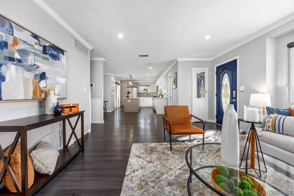Perched to capture breathtaking panoramic views, 1311 Ramona offers a rare opportunity to enjoy sweeping vistas of the Sweetwater Reservoir, the Coronado Islands, Point Loma, and the Pacific Ocean. This beautifully maintained 3-bedroom, 2-bath home has been thoughtfully remodeled over the years, blending modern style with comfortable living. Paid solar for energy efficiency makes this home the whole package. The stylish kitchen is the heart of the home, featuring quartz countertops, sleek cabinetry, stainless steel appliances, a farmhouse sink, and a clean, contemporary design that opens seamlessly into the main living spaces. Laminate flooring flows throughout the home, complementing the open-concept floor plan and creating a bright, cohesive feel. The cozy living room with fireplace invites you to relax while taking in the incredible views. Multiple patios provide ideal spaces for entertaining, dining, or simply enjoying the coastal breeze and stunning scenery. Step outside to a huge backyard designed for both fun and functionality, complete with turf, pavers, and plenty of room to host gatherings, play, or unwind while soaking in the surrounding views. Additional highlights include a massive air conditioned garage with high ceilings, SpartaFlex garage floors and abundant storage—perfect for hobbies, gear, or extra workspace. The house is wired for Gigabit Ethernet with drops in every room including the garage and and has smart home capabilities with a Nest Thermostat and Ring doorbell. With modern updates, an open layout, and truly exceptional views stretching from the reservoir to the ocean, this home is a special place to call your own.