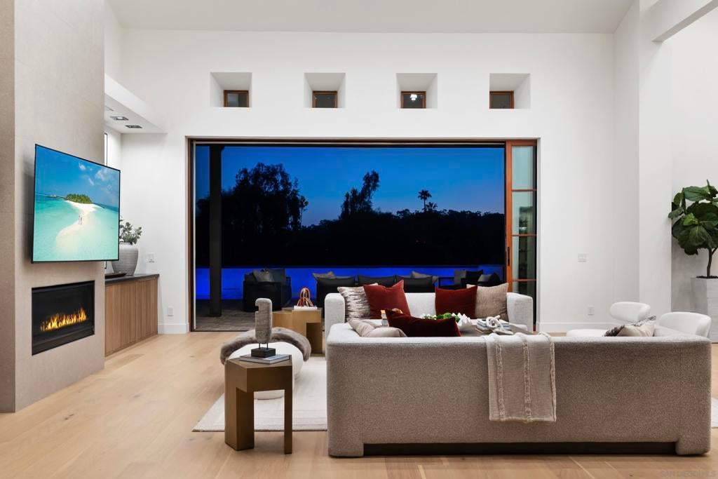 Immersed with Santa Barbara architectural elegance, this newly constructed Covenant Estate redefines Rancho Santa Fe luxury with a design that is both timeless and refreshingly contemporary. Curated for hosting as much as everyday living, walls of glass open to resort-inspired outdoor terraces, tranquil water features, and sweeping pastoral and golf course views of La Valle’s 8th green, creating an environment that feels worlds away while remaining moments from the Village and Del Mar. The approximately 5,734-square-foot main residence unfolds with an open, airy floorplan where grand living spaces, soaring ceilings, and refined finishes create a sense of calm elegance throughout. Five beautifully appointed ensuite bedrooms provide exceptional comfort, while the home's thoughtful layout offers both intimate retreats and expansive gathering spaces. Privately positioned on 4.13 scenic acres on the coveted west side of the Covenant, the residence blends clean architectural lines with warm coastal materials, creating a home that feels equally sophisticated and inviting. Sunlight pours through expansive glass as indoor and outdoor spaces flow effortlessly together, designed for the effortless Southern California lifestyle. A detached one-bedroom guest house offers privacy for visitors or extended stays, while the three-car garage accommodates collectors and modern lifestyles alike. Set behind private gates on one of the Covenant's most desirable and peaceful streets, this exceptional property represents a rare opportunity to own a brand-new luxury estate in Rancho Santa Fe.
