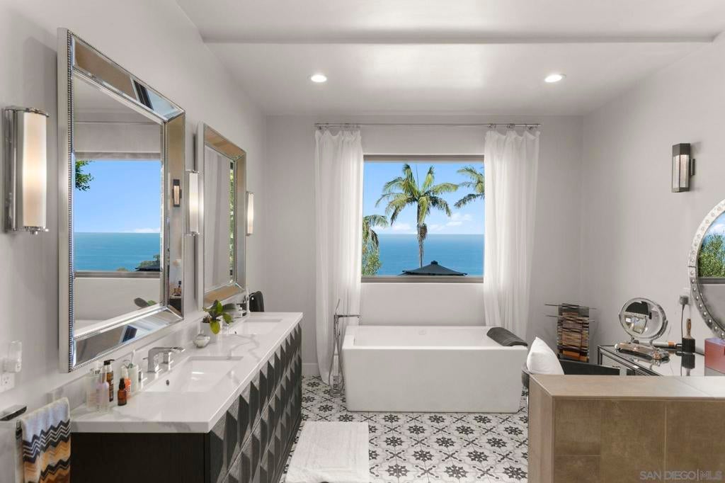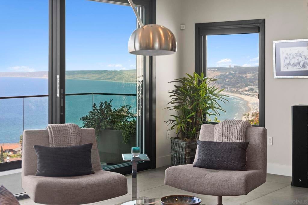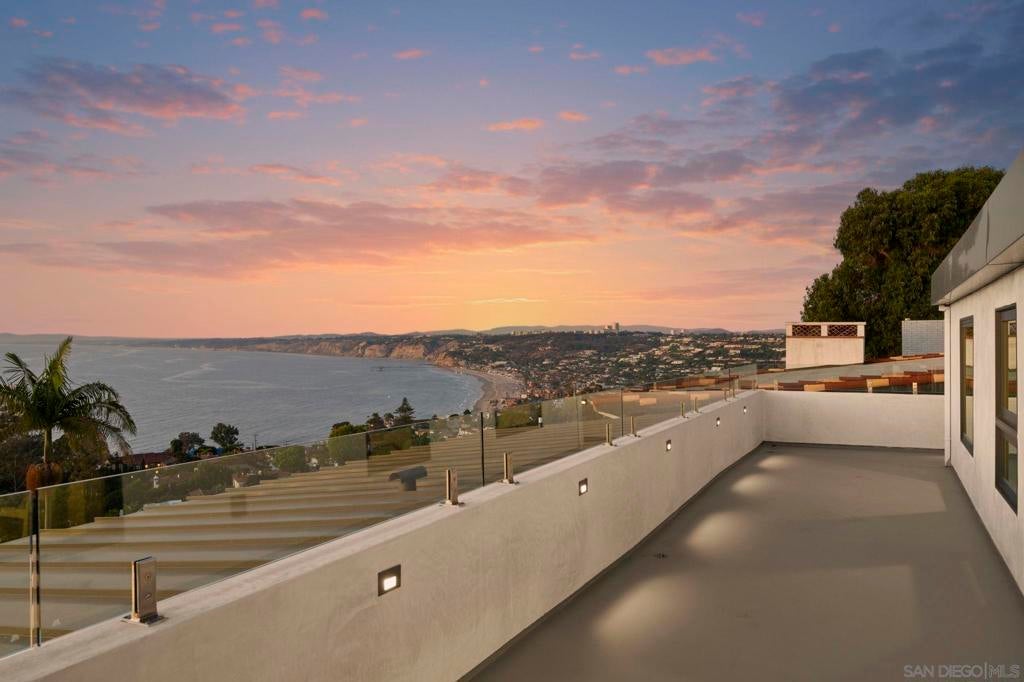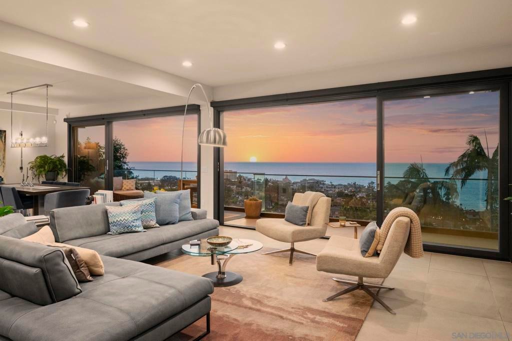 Stunning hilltop home offering expansive, unobstructed 180-degree ocean vistas—all the way from the Cove, past Black’s Beach, and to the North beyond. Perched in the coveted Country Club neighborhood, this exquisite home delivers sweeping sea views and nightly sunsets that redefine living well. Nestled among sculpted hills for ultimate privacy and serenity, the residence marries refined elegance with effortless, everyday comfort. Thoughtfully arranged over three levels with main-floor entry so it functions like a graceful two-story, the home is ideal for entertaining, relaxed family life, and taking full advantage of its dramatic setting. Just minutes from world-class dining and boutique shopping—and within walking distance of The Village, the La Jolla Natural Park trails to Mt. Soledad, and more—this is a rare opportunity to own a move-in-ready coastal retreat that invites you to savor every vista and moment. Act now to make this coastal sanctuary yours.