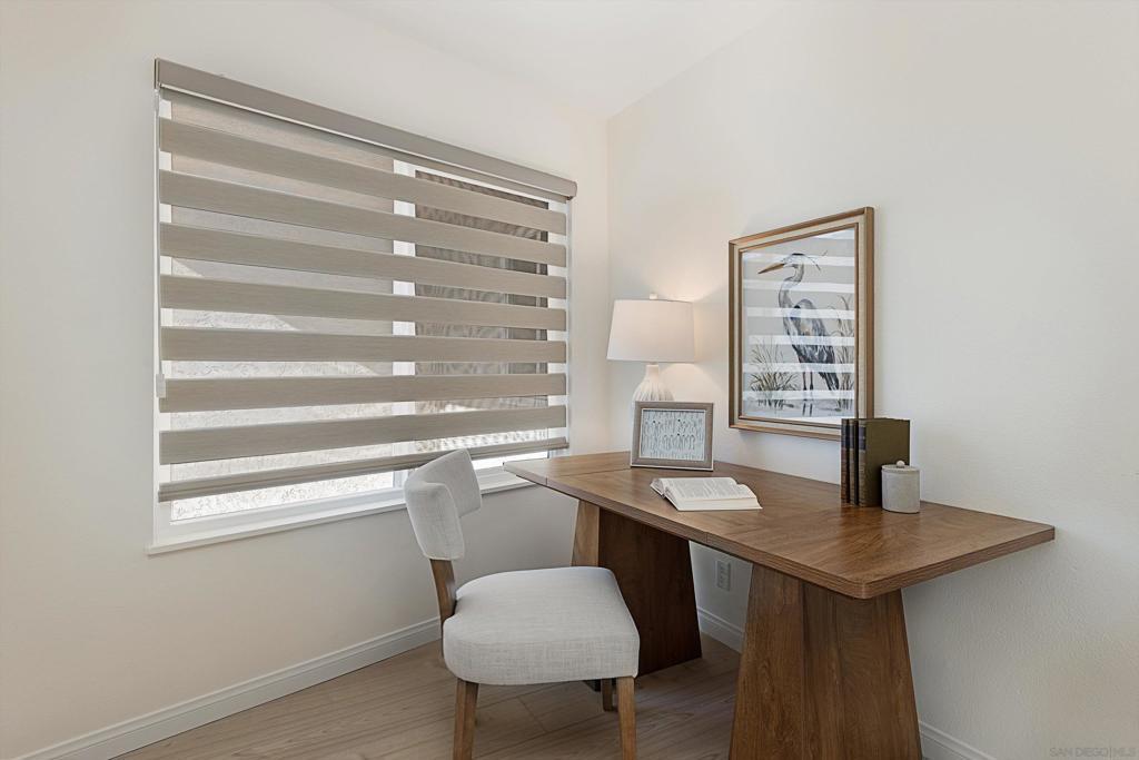 There's a particular ease to life in La Costa. This townhome is well-positioned between Encinitas, Carlsbad, and San Marcos, with Trader Joe's and Sprouts just minutes away at Bressi Ranch and the Vons practically down the street. The neighborhood has a settled, comfortable feel, and with a community pool steps from the front door and a nearby gym, the rhythm of daily life here is easy to settle into. This 3-bedroom, 2.5-bath home is the kind of place where mornings start slowly and evenings end well. At 1,851 square feet, the home has been updated throughout. New windows and new flooring run through the main living areas, and the kitchen earns its keep with a Fisher & Paykel induction range, a Bosch dishwasher, a Haier refrigerator, an LG microwave, a built-in Thermador coffee maker for café-quality mornings without leaving the house, a wine fridge, and an under-sink water filter. The primary suite features a custom closet, a gorgeous bathroom with a soaking tub, and a separate shower. The laundry area is outfitted with a new LG washer and dryer. New A/C, a solar system with backup battery, and a Tesla charger in the two-car garage round out a home that has been genuinely prepared for the next owner. The private patio is a real retreat. This is the kind of spot that earns daily use, especially as the sky shifts at the end of the day. Upstairs, the guest bedroom has an ocean view and plenty of space for a bedroom and a home gym or office. Outside, the landscaping is low-maintenance and well-kept — trees, grass, and greenery without the upkeep — making the whole property feel cared for without demanding much in return.