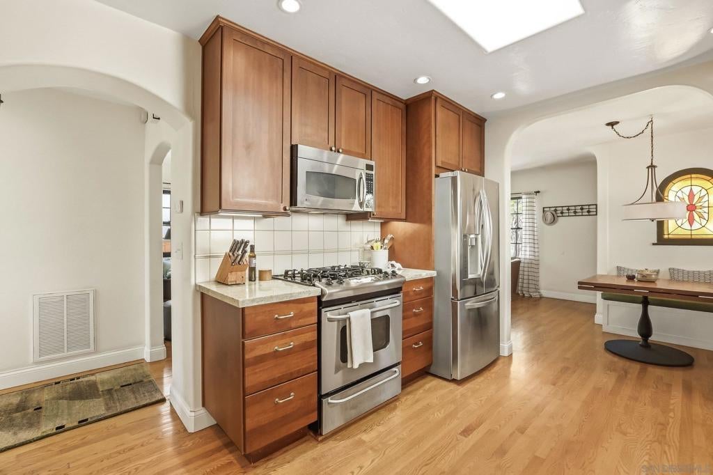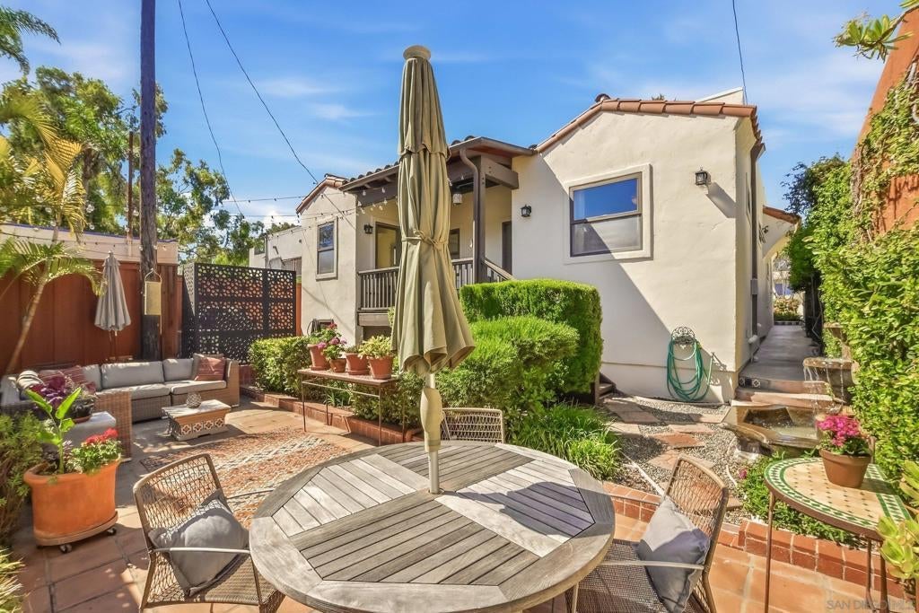 Welcome to 3405 Arizona St located in a prime location in the highly sought-after North Park neighborhood, less than a block from Balboa Park. Built in 1928, and later tastefully expanded and reimagined for today's lifestyle standards, this Spanish-style bungalow is move-in ready. The main house has 2 bedrooms and 2 baths with gleaming wood floors, beautiful period details and Spanish-style accents, including stained glass, colorful decorative tiles, coved ceilings and arched doorways. An elegant gas fireplace, with hardwood mantle, anchors the living and dining area. The skylit kitchen is spacious, yet efficient, and is loaded with storage and natural light. The granite countertops are handsome, yet subtle, and appropriately complement the warmth of the cherry wood cabinets. Both bedrooms, one ensuite, face the back and side gardens, and feel private and quiet. Off the primary bed is a cozy sun-lit space, perfect as a home office, or perhaps a nursery. The detached casita, with a bath, kitchenette, and laundry, offers amazing bonus space with any number of potential uses. The front garden with mature flowering plum trees is enclosed by a "neighbor-friendly" low courtyard wall and wrought iron gates. The back garden feels and lives like an outdoor room, whether experienced from the elevated covered deck off the back of the home, or the ample-sized ground-level patio. It's perfect for lounging, entertaining and enjoying meals alfresco. The gardens will make plant lovers swoon. Practical features of the home include off-street parking for two cars (one for the main house, one for the casita), central HVAC (heat pump in the casita), 220V electric car charger at the front drive, custom closets by California Closets, and dual pane windows. 3405 Arizona St is just a stone's throw from Morley Field, swim laps at the Bud Kerns Pool, play a game of doubles at the Balboa Park Tennis Club, bike the velodrome, or hike the many miles of trails. And, let's not forget the Dog Park! Popular restaurants, bars, live music, and so much more are close by as well. Come see for yourself!
