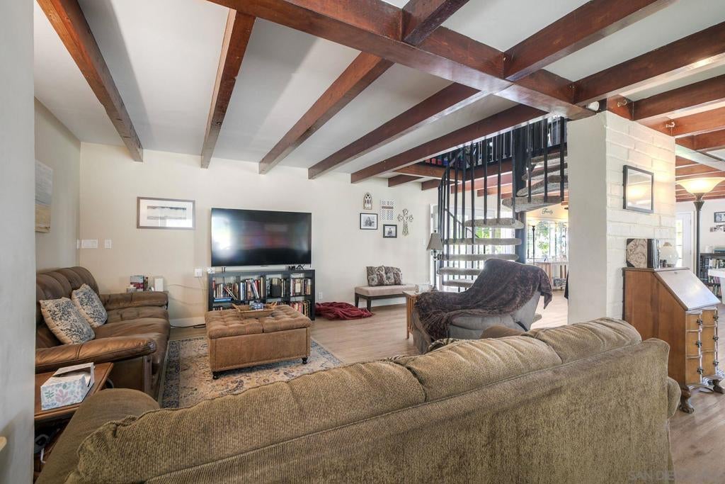 Character-Filled Detached Home on Over Half an Acre! Located in the heart of Escondido, this warm and inviting home offers space, charm, and flexibility that is hard to find. Just minutes from Grand Avenue's boutiques, dining, and the California Center for the Arts, with easy access to the 15 and 78 freeways. Nearby Felicita County Park, Kit Carson Park, and Queen Califia's Magical Circle are all within a short drive. The home offers 3 bedrooms, 2 bathrooms, and approximately 2,501 sq. ft. of living space, plus 2 additional bonus rooms ideal for a home office, playroom, or nursery. Sitting on a .55-acre lot, the property features an expansive driveway with abundant parking, ideal for an RV, boat, trailer, or multiple vehicles. Step inside to soaring high ceilings with charming wood beams and an open-concept layout that flows seamlessly from the living room into the dining room and large kitchen, equipped with abundant cabinet space. A cozy family room sits just off the dining area, and French doors lead to a patio sitting area, perfect for outdoor entertaining. A full bathroom, spacious laundry room, and an additional bonus room are situated on the first floor. Head upstairs to find a loft, 3 bedrooms, and an additional room with balcony access. The primary bedroom is spacious and features a walk-in closet and direct access to the bathroom. The spacious second-level balcony offers beautiful views, perfect for enjoying morning coffee. The large yard offers tremendous potential, including the possibility of adding an ADU