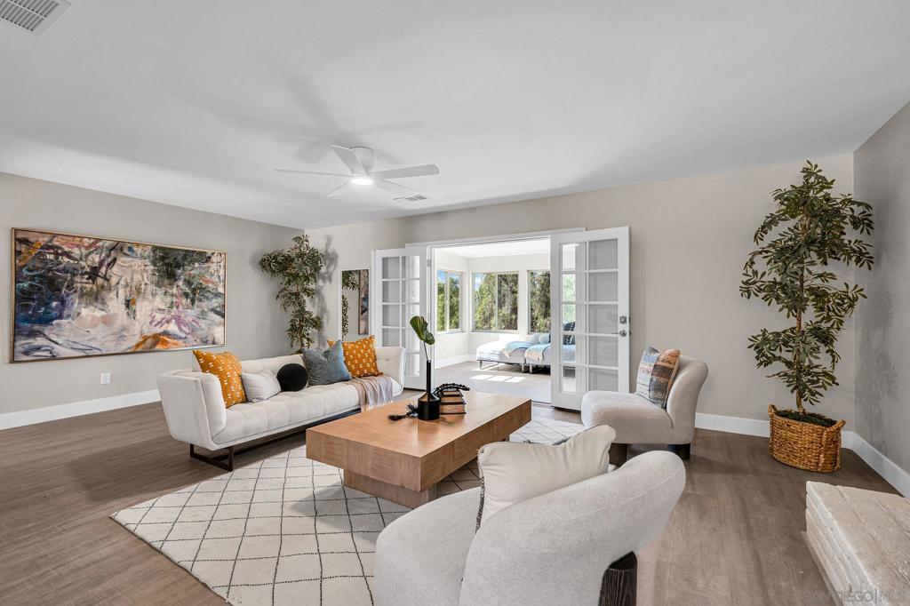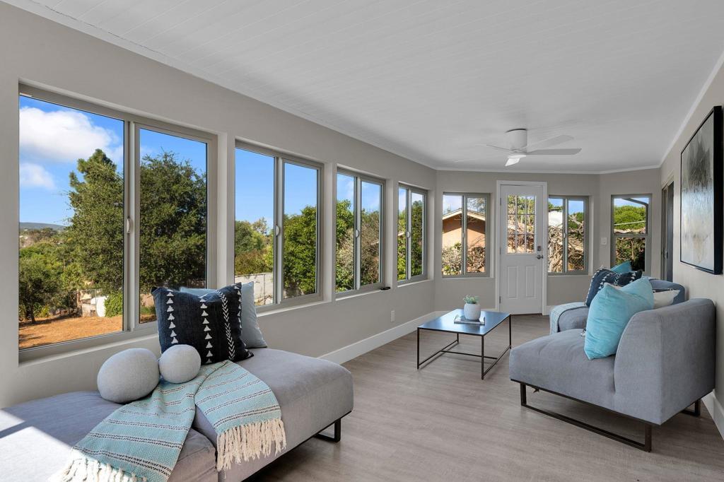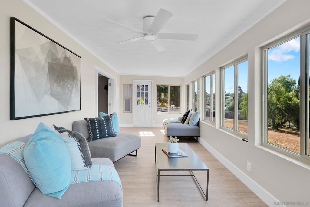 Your peaceful retreat awaits! Not visible from the street & well insulated from noise, this one-of-a-kind property has a country-feel, on almost a full acre - but close to all your daily needs, as well as the 15 & 78. Beautifully remodeled, this 3bed/2ba home sits high on a HUGE usable lot that fits many needs: an ADU for family or income, parking for RVs & toys, a backyard pool oasis, workshop, possible lot split, growing your own food, or just space from your neighbors! Must be seen to appreciate! SEE SUPPLEMENT for more info.. Upgraded sunroom with new dual-paned windows, new doors & insulation offers beautiful views of surrounding trees & mountains to enjoy gorgeous sunsets and cool breezes. Incredibly unique properties like this don’t come around often…don’t miss your chance to make it your personal sanctuary! Room sizes are approximate, sunroom is included in square footage.