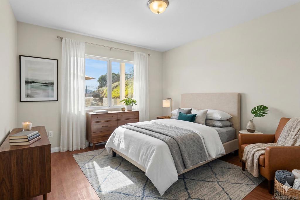 Perched above South Escondido on nearly 1 acre of land, this 2001 custom built Lake Hodges estate offers unparalleled panoramic views from every room. The expansive outdoor areas and the 3299 sq ft home are an entertainers dream with breath taking scenery always in sight. For multi-generational living or rental potential, the lower level features a separate living space with a private entrance, one bedroom plus an optional second, a full bath, and a kitchenette already plumbed for a full conversion. The home is filled with ambient light, creating a warm and airy atmosphere throughout its versatile floor plan, which features three spacious bedrooms plus two optional rooms perfectly suited for an office, gym, or nursery. At the heart of the home, the kitchen is a chef’s delight, boasting newer appliances, extensive cabinetry and counter space, and a walk-in pantry. It flows seamlessly into a sun-drenched eat-in nook for casual dining. The primary suite serves as a true sanctuary, complete with vaulted ceilings and a private slider leading to a view deck. Its ensuite bathroom provides a spa-like experience with a separate soaking tub, walk-in shower, private commode, and a walk-in closet. Adjacent is the spacious laundry room with plenty of storage and cabinets. The property’s outdoor oasis includes 5 distinct seating areas, an in-ground pool and spa, supported by 2 owned solar systems, one for electricity and one that heats the pool water for year-round enjoyment. Completing the home is an oversized three-car garage with ample storage and a dedicated workspace area.