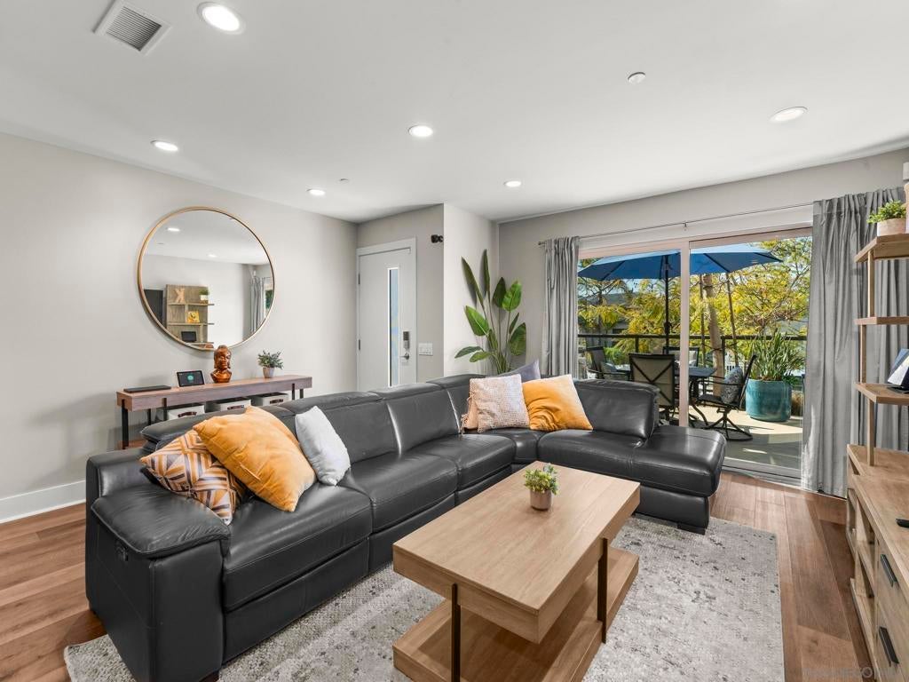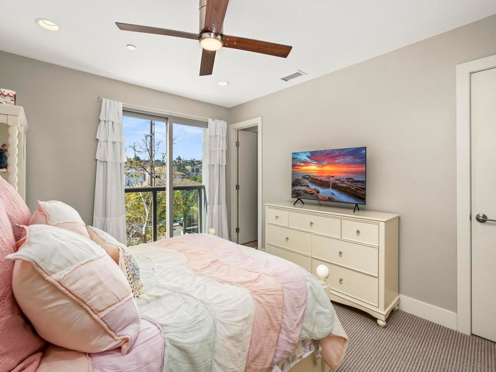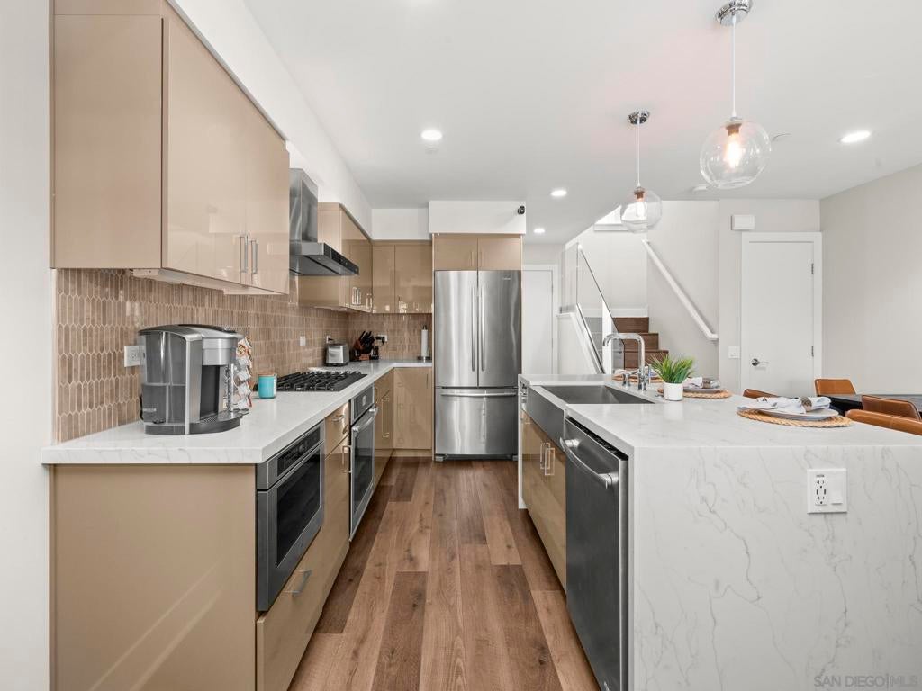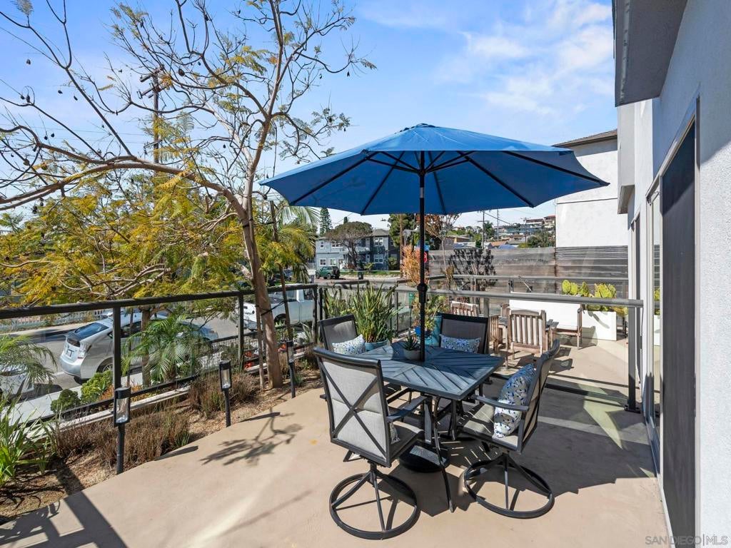 Experience modern coastal elegance in the heart of Point Loma with this exceptional 3-bedroom, 3.5-bath townhome. This property perfectly combines style, functionality, and a prime location. Designed for comfort, the home features a gourmet kitchen on the main level equipped with Jenn-Air appliances, quartz countertops, and an open-concept layout filled with natural light and soaring ceilings. Enjoy seamless indoor-outdoor living with a spacious private patio ideal for entertaining, plus a rooftop deck offering panoramic views of the bay, city, and hills. The luxurious primary suite boasts a walk-in closet, a private balcony, and a spa-inspired bathroom. Additional highlights include two secure garage parking spaces, EV-ready parking spaces, and gated storage in a charming 15-unit boutique community. Conveniently situated near Shelter Island, Liberty Station, beaches, dining, shopping, and the airport, this home truly embodies the best of coastal San Diego living.