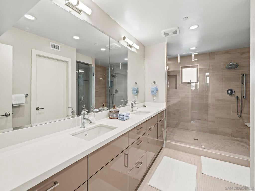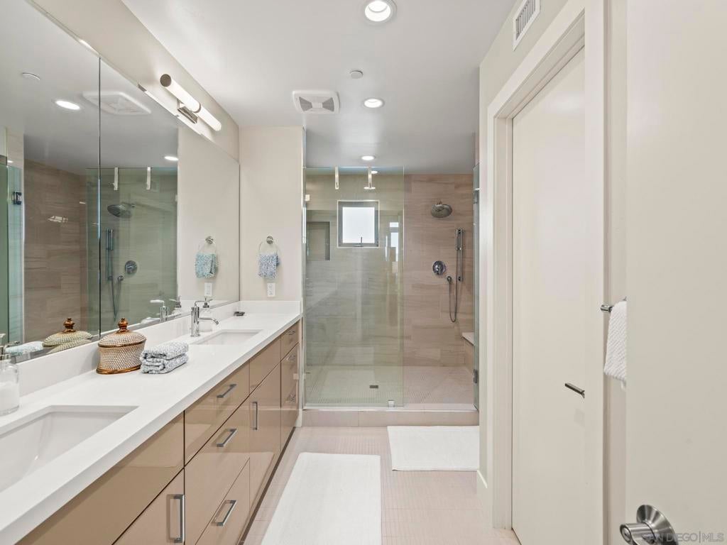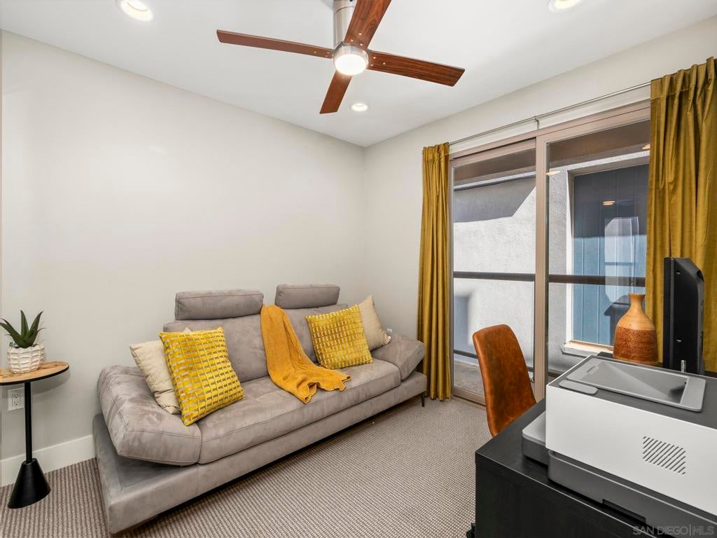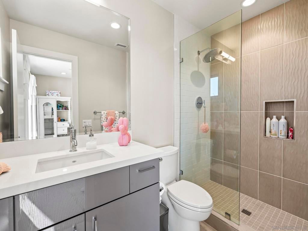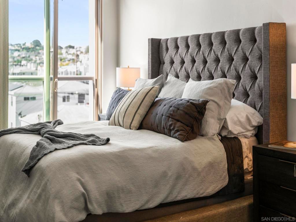 Experience modern coastal elegance in the heart of Point Loma with this exceptional 3-bedroom, 3.5-bath townhome. This property perfectly combines style, functionality, and a prime location. Designed for comfort, the home features a gourmet kitchen on the main level equipped with Jenn-Air appliances, quartz countertops, and an open-concept layout filled with natural light and soaring ceilings. Enjoy seamless indoor-outdoor living with a spacious private patio ideal for entertaining, plus a rooftop deck offering panoramic views of the bay, city, and hills. The luxurious primary suite boasts a walk-in closet, a private balcony, and a spa-inspired bathroom. Additional highlights include two secure garage parking spaces, EV-ready parking spaces, and gated storage in a charming 15-unit boutique community. Conveniently situated near Shelter Island, Liberty Station, beaches, dining, shopping, and the airport, this home truly embodies the best of coastal San Diego living.