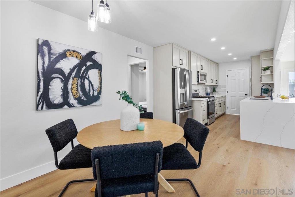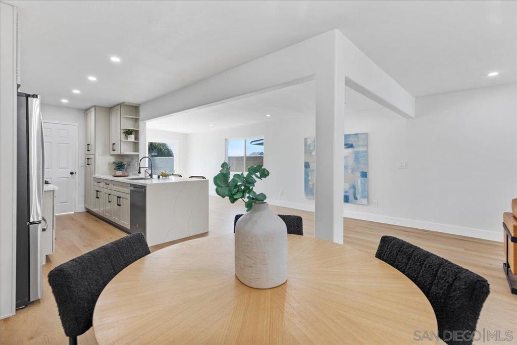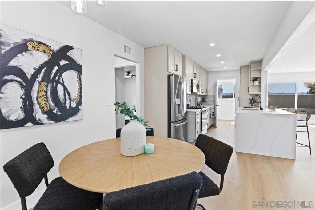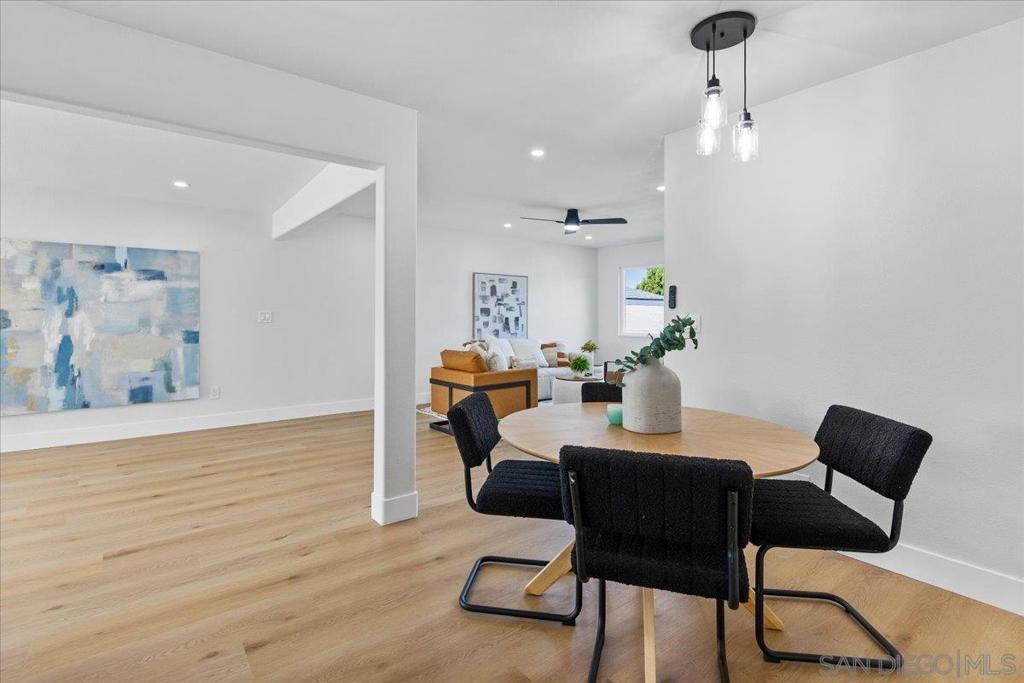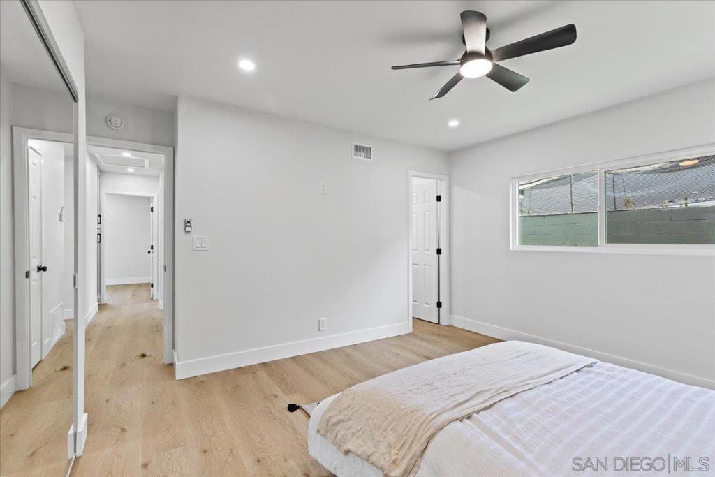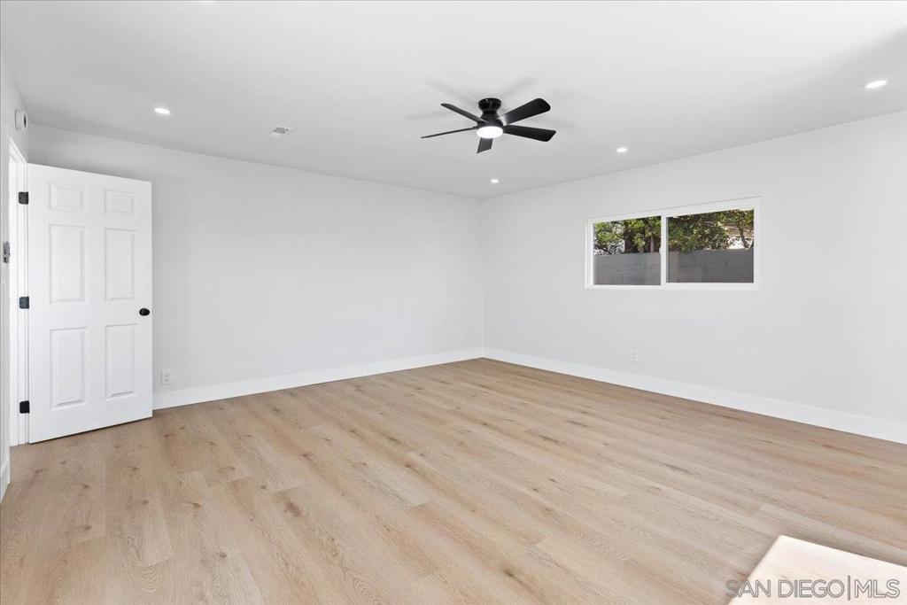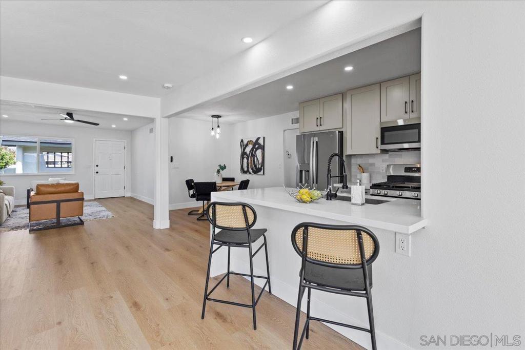 This beautifully reimagined single-level residence offers approximately 1,744 square feet of thoughtfully designed living space, featuring 3 bedrooms, 2 bathrooms, and an attached two-car garage, all set on a generous 5,800 square foot lot. Recently remodeled with a refined designer aesthetic, the home showcases a stunning chef-inspired kitchen with custom cabinetry, quartz countertops, a dramatic waterfall island, and an elegant tile backsplash. The beautifully upgraded bathrooms feature designer tile surrounds and sleek glass enclosures, while additional highlights include luxury vinyl plank flooring, recessed lighting, dual-pane windows, ceiling fans, mirrored wardrobe doors, and a bright, open-concept floor plan designed for modern living and effortless entertaining. Extensively upgraded inside and out, the home reflects a comprehensive renovation focused on quality, efficiency, and lasting appeal. Exterior improvements include a new roof with updated sheathing and fascia, fresh paint, new windows and sliders, low-maintenance synthetic turf, and a new garage door with motor. Inside, thoughtful upgrades include new plumbing throughout, a brand-new relocated water heater, updated electrical with a new 125-amp panel, recessed lighting, and modern fixtures. Comfort is enhanced with a new furnace, improved ducting, and upgraded insulation in both the attic and garage. Additional enhancements include new interior texture and paint, upgraded flooring with underlayment, new baseboards, doors, and hardware, along with fully remodeled kitchen and baths. Ideally situated near shopping, dining, neighborhood parks, and with convenient access to the 5, 805, and 905 freeways, this home offers a seamless blend of elevated style, comfort, and everyday living!