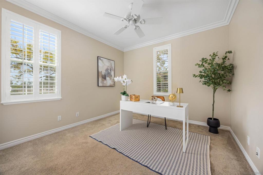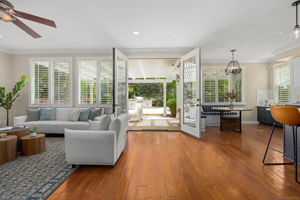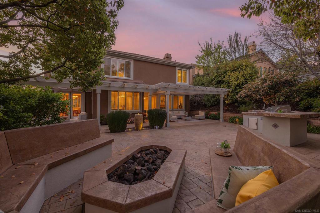 This is the one you’ve been waiting for! Located in a highly desirable south Pomerado neighborhood of Scripps Ranch, this beautifully maintained home offers the perfect blend of space, privacy, and modern upgrades in a quiet, well-kept community. Built in 2005, the home features a flexible and highly sought-after floor plan with 5 bedrooms plus a spacious loft, including a downstairs bedroom suite with a full bedroom and full bathroom—ideal for guests, multigenerational living, or a private home office. Inside, you’ll find rich hardwood floors and a remodeled kitchen designed for both everyday living and entertaining, with updated finishes and a functional layout that opens to the main living areas. Step outside to a thoughtfully remodeled backyard designed for year-round enjoyment, featuring a gas firepit, peaceful fountain, swing, built-in BBQ, pergola seating area, and low-maintenance landscaping—perfect for relaxing evenings or hosting friends and family. The trees and shrubs provide privacy and shade. Additional highlights include a 3-car garage and owned solar, offering both convenience and energy efficiency. Located within the Whispering Ridge community, residents enjoy access to fantastic HOA amenities including a large pool, tennis and pickleball courts, and a clubhouse, all set within a peaceful and quiet neighborhood and a very short walk from the home. With its prime location, versatile layout, and impressive upgrades, this exceptional Scripps Ranch home truly has it all. Welcome home!