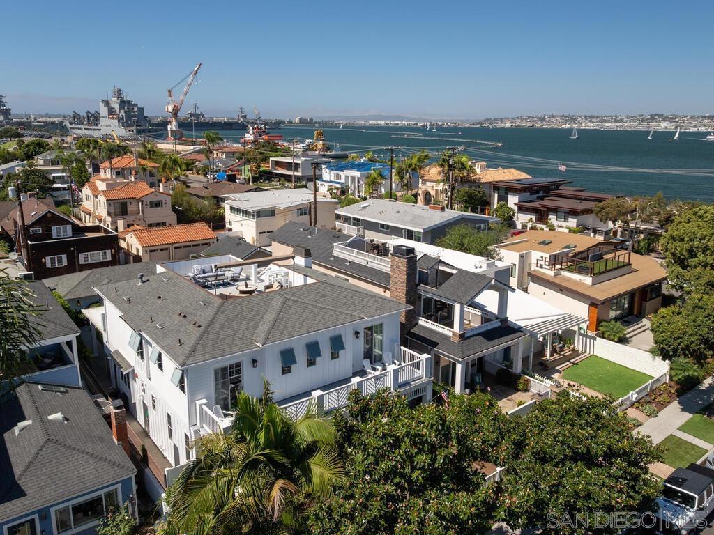 120 I Avenue presents a compelling opportunity to acquire one of Coronado’s premier custom residences. Ideally situated just steps from the bay and across from Bay View Park, the home blends architectural presence, refined coastal interiors, and exceptional indoor-outdoor living—along with rare parking capacity for up to six vehicles, including a detached two-car garage, two covered spaces, and additional off-alley parking. The thoughtfully designed main level features engineered wood flooring, formal dining, and a chef’s kitchen with premium appliances, quartz countertops, and a generous center island opening seamlessly to the living area with fireplace and covered patio complete with built-in BBQ and grassy yard. A first-floor bedroom suite offers flexibility for guests or multigenerational living. Upstairs, three additional en-suite bedrooms include a luxurious primary retreat with fireplace, spa-inspired bath with soaking tub and rain shower, walk-in closet, and private balcony. Two secondary suites open to a covered veranda, while the expansive rooftop deck—accessible from both levels—serves as a true highlight of the home, capturing sweeping views of the bay, Coronado Bridge, and downtown San Diego skyline. Additional highlights include surround sound, custom millwork, plantation shutters, security system, and alley access. Located moments from the ferry landing, shops, and dining, this residence delivers privacy, scale, and the best of Coronado living.