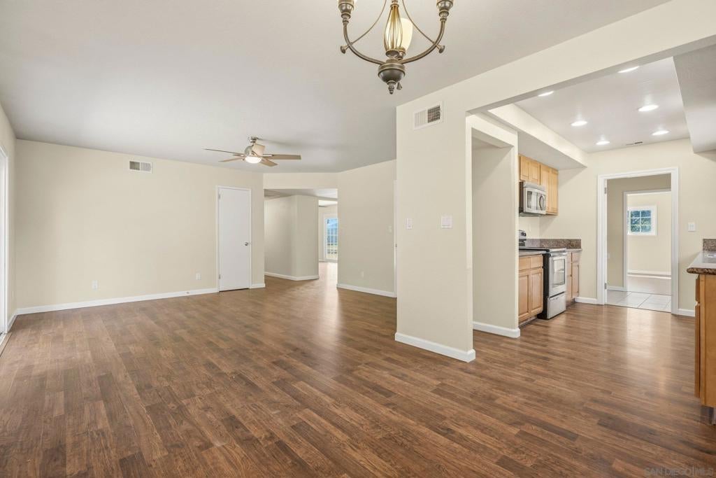 Escape to your private hilltop sanctuary on 1.36 acres of flat usable land in the heart of Ramona. Tucked away at the end of a private road in a peaceful silent zone, this meticulously updated main residence features an airy open concept floor plan with modern laminate flooring and carpet, recessed lighting, and a chef’s kitchen anchored by sleek granite countertops and stainless steel appliances. Breathtaking panoramic mountain views are framed through large bright windows throughout the home. Outside, the expansive lot provides a blank canvas for an equestrian setup, pool, or vineyard. The property includes a detached outbuilding with a one car garage and a covered carport. Enjoy unparalleled privacy and the sustainable benefit of an active solar system, all just minutes from local schools, shopping, and famous Ramona wineries. Detached garage, workshop, and carport. Note supplement for residence amenities.