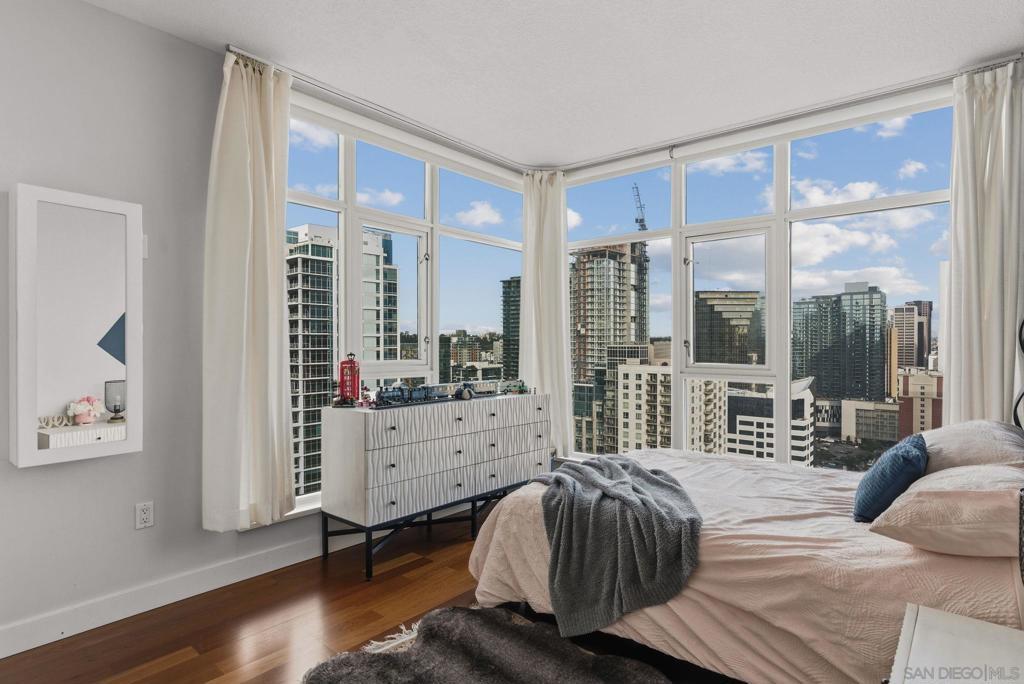 Perched high on the 29th floor of The Grande South, Residence 2903 showcases breathtaking panoramic views of the bay, city skyline, and beyond through expansive floor-to-ceiling windows. This highly coveted floor plan offers a seamless blend of comfort and sophistication, featuring a spacious private terrace ideal for taking in San Diego’s iconic sunsets and vibrant waterfront energy. Located in one of Downtown’s most desirable pockets, you’re just moments from the waterfront, the charm of Little Italy, and an array of acclaimed dining and lifestyle destinations. A beautifully landscaped promenade just outside the building connects you effortlessly to it all. Residents of The Grande South enjoy a full suite of resort-style amenities, including a heated pool and spa, sauna and steam room, fitness center, clubhouse, guest suites, and secure guest parking. With 24-hour concierge and security, along with thoughtful services like dry-cleaning pickup and delivery, this is elevated high-rise living at its finest.
