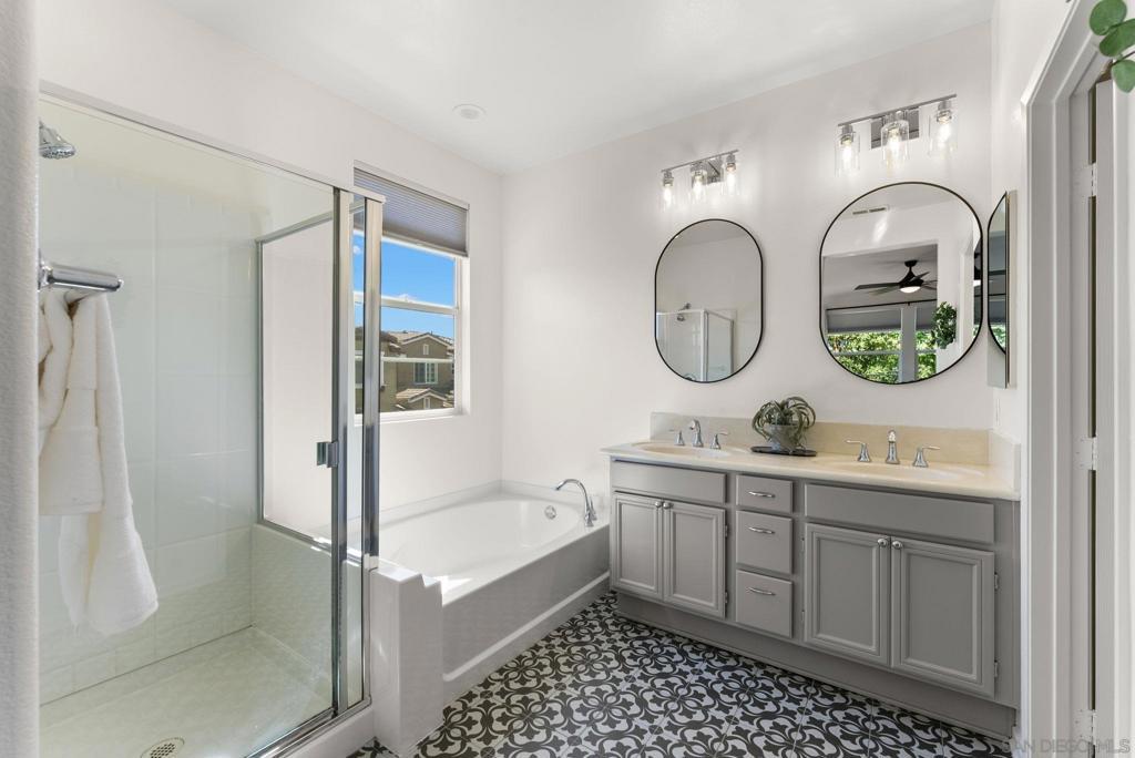 Located in the highly sought-after Riverwalk community, this spacious end-unit, detached rowhome offers one of the largest floor plans available, with over 2,220 sq ft, 4 bedrooms, and 3.5 bathrooms perched above an expansive greenbelt. The home lives and feels like a single family home with direct garage access and laundry room. Inside, the main living area is filled with natural light and showcases high ceilings, fresh interior paint, and hard surface flooring. The large kitchen offers ample cabinetry, a walk-in pantry, and opens to a large dining area that’s perfect for everyday living or entertaining. The flexible layout works for a variety of living situations, with a downstairs bedroom, full bath, and a generously sized bonus room ideal for a secondary living space, guest suite, or home office. Upstairs features dual primary suites, offering both comfort and privacy. Additional highlights include updated windows, new AC, updated kitchen appliances, a full laundry room, and direct access to the attached two-car garage. Riverwalk residents enjoy access to a community pool, spa, tot lot, and multiple greenbelts, making this a well-rounded place to call home. Just across the street from the highly rated K–8 school, YMCA, and the Santee Sportsplex, home to summer concerts, 4th of July celebrations, and year-round events. The location offers an unbeatable blend of convenience and community. Come see why people love living here and choose to stay!