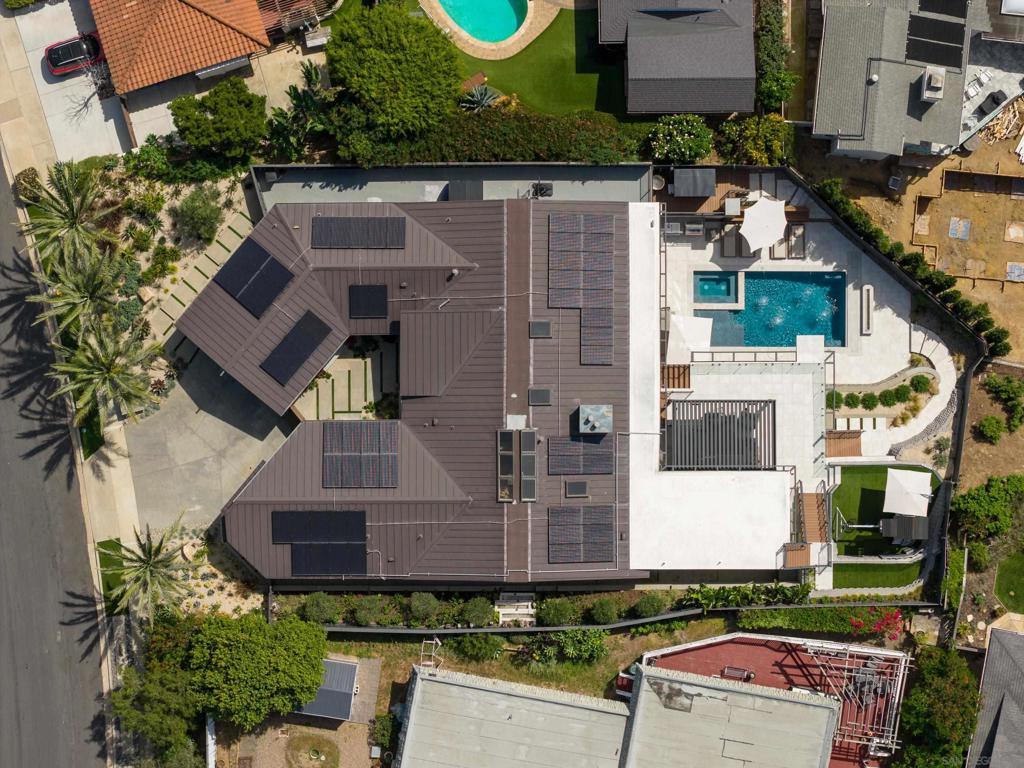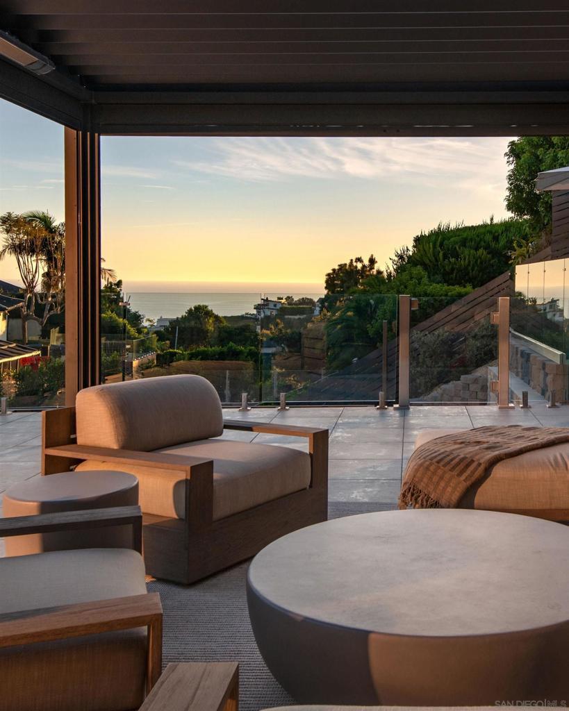 Welcome to Rutgers Road, a beautifully constructed ocean-view residence in La Jolla where no detail has been overlooked, with $1.2M+ in professionally designed upgrades. Showcasing exceptional landscape architecture, the outdoor spaces feature an ocean-view pool and spa with a cascading waterfall, outdoor movie theatre, and multiple thoughtfully designed living areas and amenities. Perched in the iconic hills overlooking the Pacific, the home spans three levels yet lives primarily like a single story, with the main floor offering the kitchen, living room, view deck, primary suite, two additional bedrooms, additional bedroom for an optional office, laundry, pantry, garage access, and a private housekeeper’s room—an incredibly rare layout for a home of this scale. The primary suite is a true retreat, featuring a spa-inspired marble bathroom with heated floors and a spacious walk-in closet. Extensively upgraded throughout, the home blends refined interiors with resort-style outdoor living. The backyard has been transformed into a private oasis with a new pool and spa, elevated terrace with glass railings, Trex decking, outdoor kitchen and BBQ, fire pit, motorized pergola with heaters, infrared sauna, and cold plunge, all enhanced by professional landscaping, drainage, and lighting. The front yard offers striking curb appeal with curated landscaping, including King Palms, olive trees, and a statement fountain. Additional upgrades include exterior and structural improvements, custom railings, upgraded electrical and AV systems, solar, security, and custom window treatments. New Solar system paid off in full and saves up to $1177/mo in energy costs. Solar docs can be found in the Documents tab.