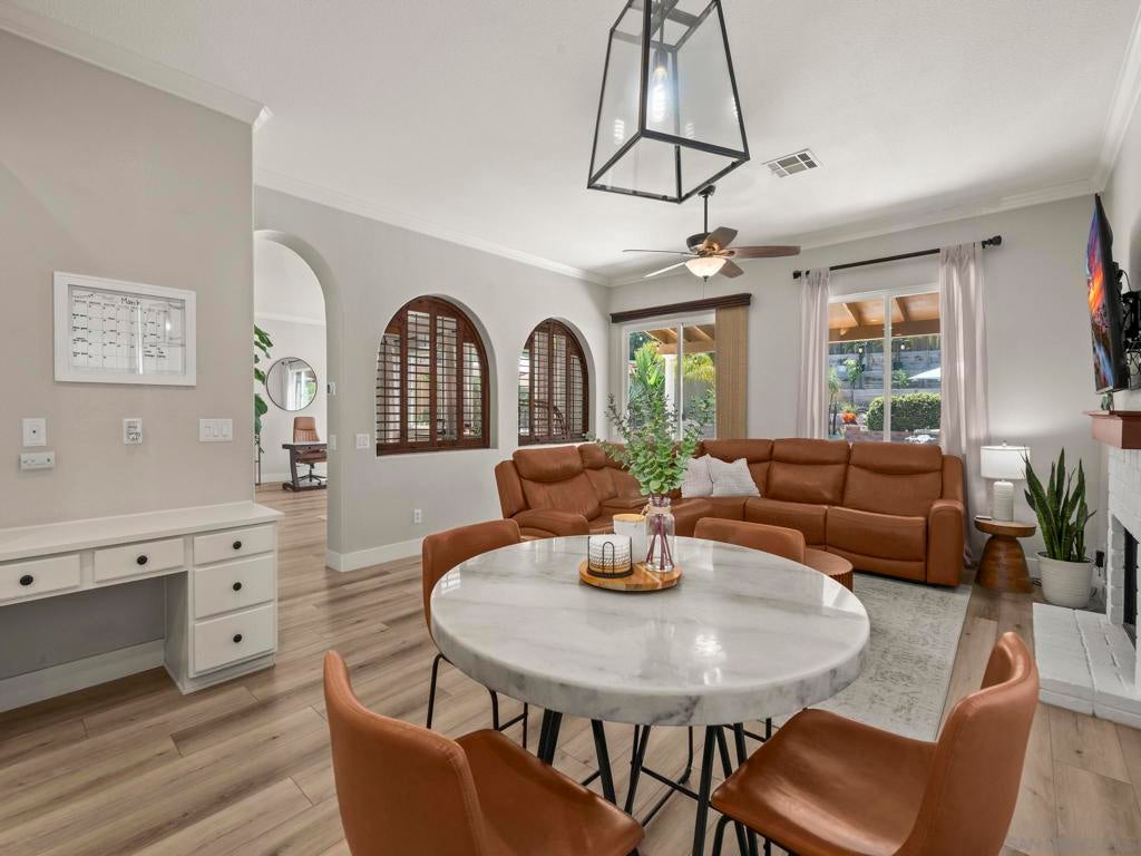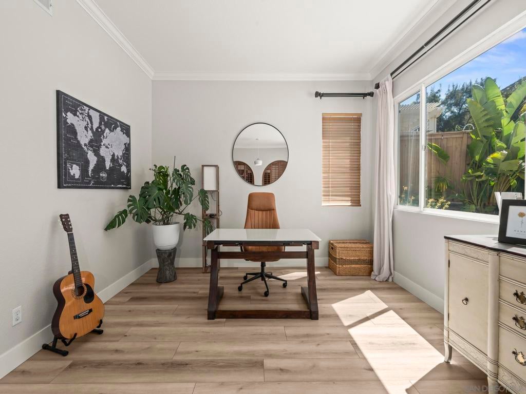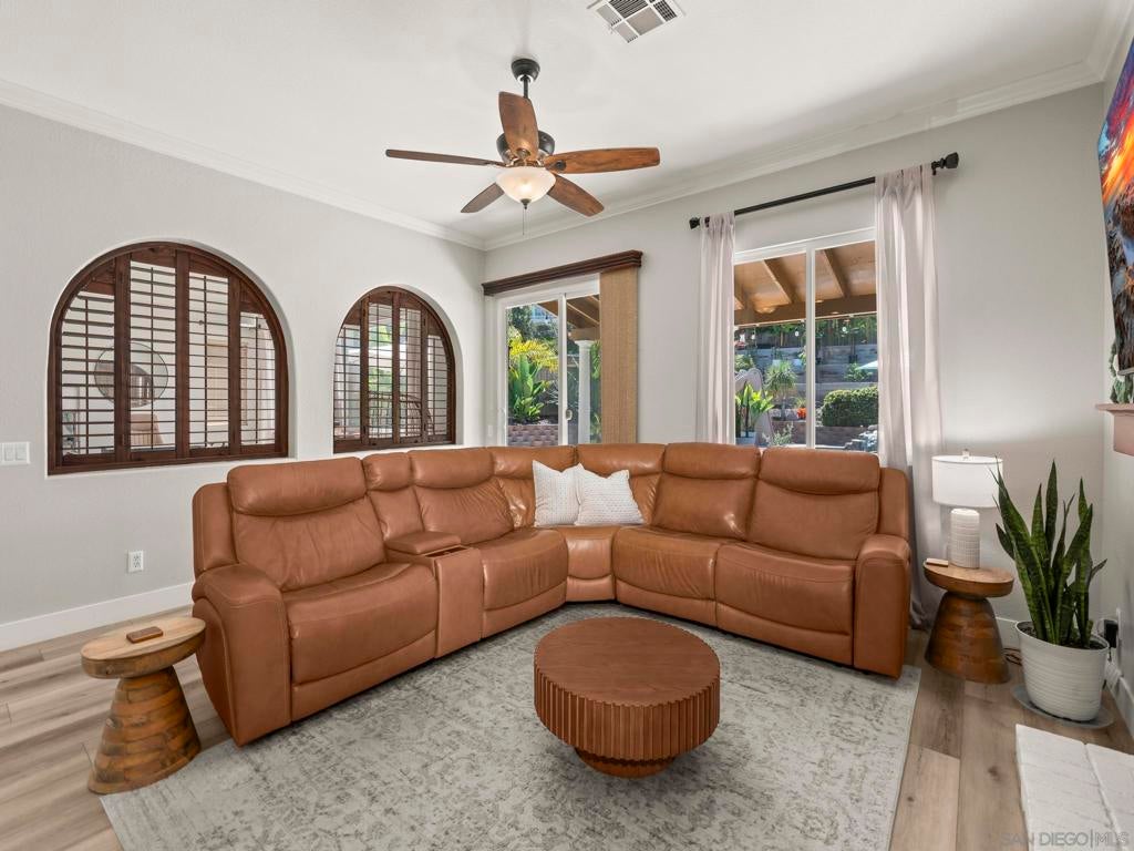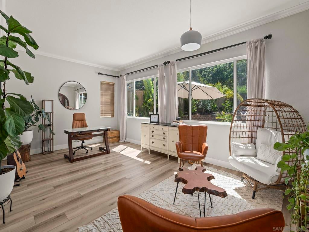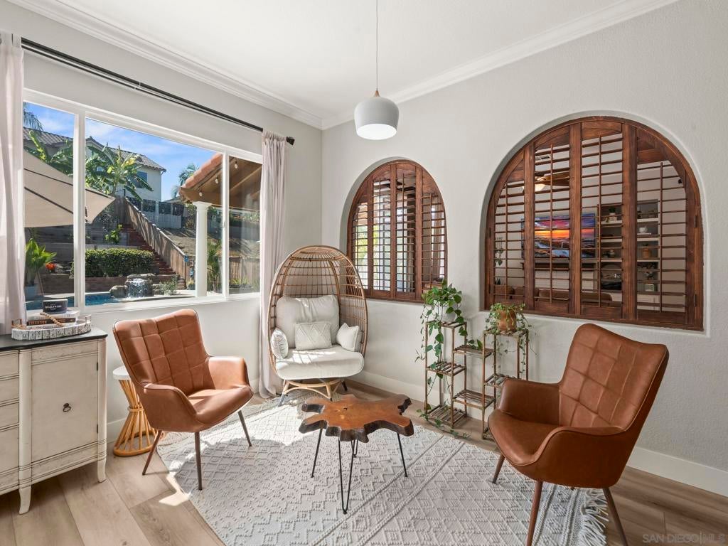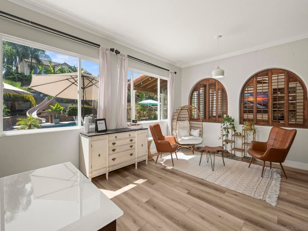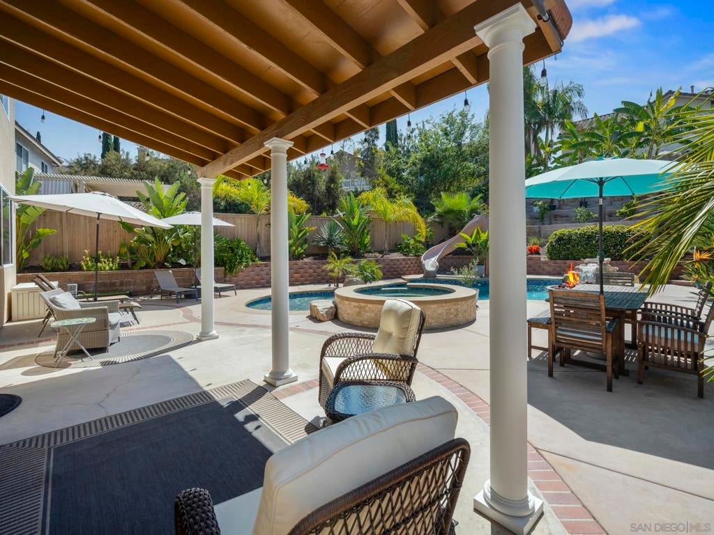 ONE-OF-A-KIND! You don't want to miss this opportunity, resort-style living awaits in this beautifully upgraded home featuring a private tropical backyard oasis. Designed for both relaxation and entertaining complete with a sparkling heated private pool with slide, spa with waterfall, multiple seating areas, a covered patio, fire feature, outdoor shower, and custom terrace areas with oranges, lemons, mango, banana, guava, passion & dragon fruit trees! The house welcomes you with timeless updates throughout including luxury vinyl plank flooring, recessed lighting & ceiling fans, 5 bedrooms + office area, 3 bathrooms, over 2,300 esf., separate laundry room where washer and dryer convey, one bedroom with shower/bathroom access downstairs, formal living room with backyard tropical views, formal family room open to dining area and highly upgraded kitchen, all appliances convey including refrigerator, oversized 2 car garage with custom storage built-ins, paid for solar (5.76kw), 4+ driveway parking spaces - enough room for RV or Boat, walk-in closets, primary suite with separate shower, tub and toilet areas, high ceilings and an open floor plan filled with tons of natural light! The house is located in the pristine neighborhood of Otay Ranch, Village 5 with extremely low HOA dues of only $138.98/month. Offering a resident only community recreation center, pool/spa in addition to a community park with playground, basketball courts, and designated trails for potential walking, jogging and biking. The well rated school districts include Chula Vista Elementary and Sweetwater Union. ONE-OF-A-KIND! You don't want to miss this opportunity, resort-style living awaits in this beautifully upgraded home featuring a private tropical backyard oasis. Designed for both relaxation and entertaining complete with a sparkling heated private pool with slide, spa with waterfall, multiple seating areas, a covered patio, fire feature and custom terrace areas full of lush landscaping! The house welcomes you with timeless updates throughout including luxury vinyl plank flooring, recessed lighting and ceiling fans, custom built -ins, 5 bedrooms + office area, 3 bathrooms, over 2,300 esf., separate laundry room where washer and dryer convey, one bedroom with shower/bathroom access downstairs, formal living room with backyard tropical views, formal family room open to dining area and highly upgraded kitchen, all appliances convey including refrigerator, oversized 2 car garage with custom storage built-ins, paid for solar (5.76kw), 4+ driveway parking spaces - enough room for RV or Boat, walk-in closets, primary suite with separate shower, tub and toilet areas, high ceilings and an open floor plan filled with tons of natural light! The house is located in the pristine neighborhood of Otay Ranch, Village 5 with extremely low HOA dues of only $138.98/month. Offering a resident only community recreation center, pool/spa in addition to a community park with playground, basketball courts, and designated trails for potential walking, jogging and biking. The well rated school districts include Chula Vista Elementary and Sweetwater Union.