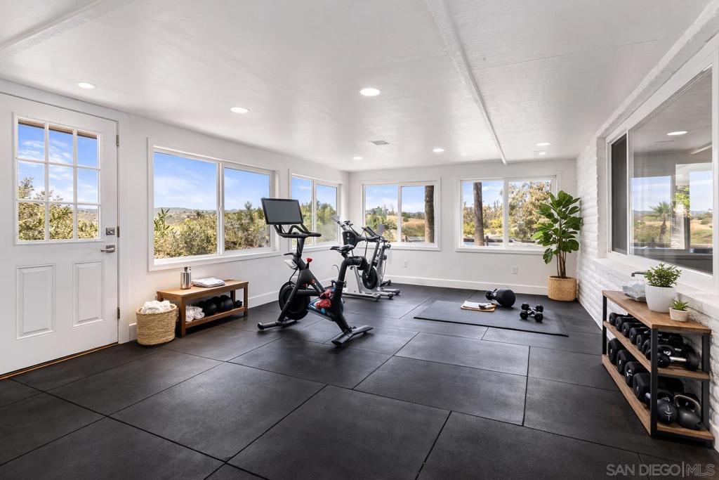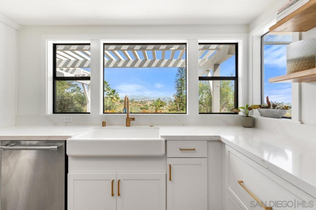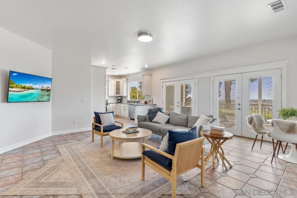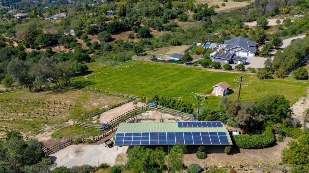 Set against sweeping hillside views, golden sunsets, and gentle coastal breezes, this private Fallbrook retreat offers a rare blend of beauty, serenity, and lifestyle. This single-story estate spans 4,060 square feet on 2.89 acres, featuring a 4 bedroom, 3 bathroom main residence and a detached 2 bedroom, 1 bathroom guest house—creating a flexible and inviting environment for extended living or hosting. Designed to feel both elevated and effortless, the main residence is filled with natural light from expansive windows, highlighting open-concept living spaces with exposed beam ceilings and wide-plank wood floors. The kitchen serves as the heart of the home, complete with a generous island, skylights, and premium Thermador appliances, flowing seamlessly into the living and dining areas. The primary suite offers a peaceful escape with tranquil views and a spa-inspired bath featuring a soaking tub beside picture windows. Outside, enjoy a resort-style pool, pergolas, and multiple outdoor spaces surrounded by mature landscaping, open skies, and privacy. Stables and a vibrant dragon fruit grove enhance the property’s versatility and unique character. Timeless and inviting, this home captures the essence of Fallbrook living.