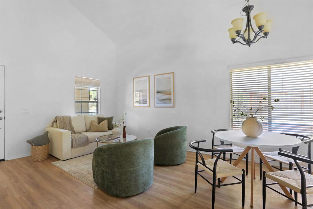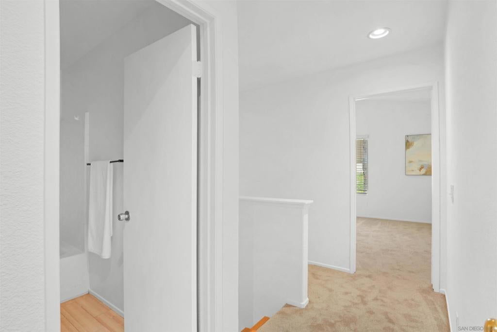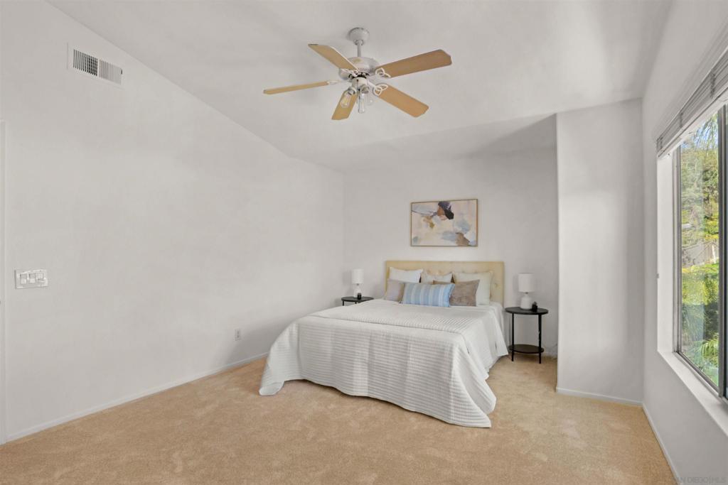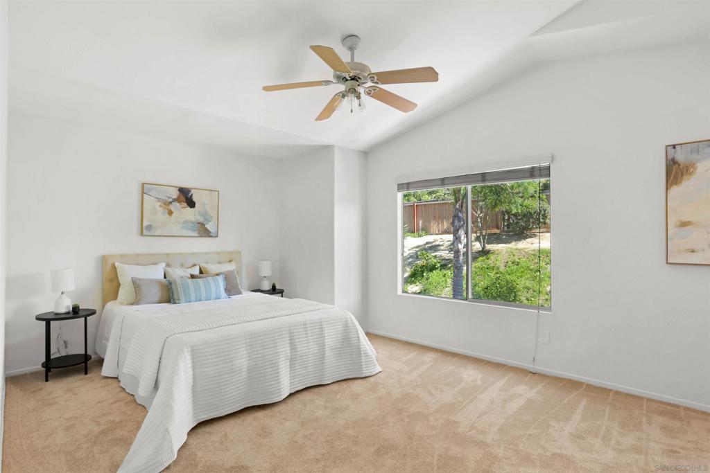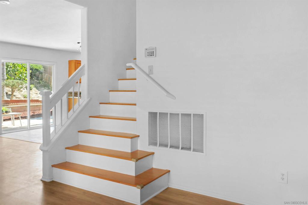 North County living at its finest. Centrally located in the Mission Santa Fe community surrounded by parks and open space, this home checks all the boxes "including" affordability. Freshly painted interior, newly installed carpeting throughout the bedrooms, and refreshed landscaping are just a few of the enticing features. (Supplement) You'll appreciate the vaulted ceilings upon entering the combination living/formal dining area. The family room with fireplace and beautiful views to the backyard flows seamlessly with the casual dining area and well designed kitchen. The handy island food prep area and secret pantry hidden just inside the interior laundry room contributes nicely to the overall functionality of the kitchen space. All bedrooms are upstairs and the Primary bedroom is quite spacious offering beautiful views to the backyard. The backyard features a large entertaining patio area, multiple fruit trees, and the oversized side yard is just waiting for you to design the retreat of your dreams.