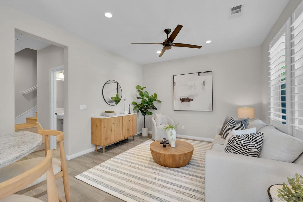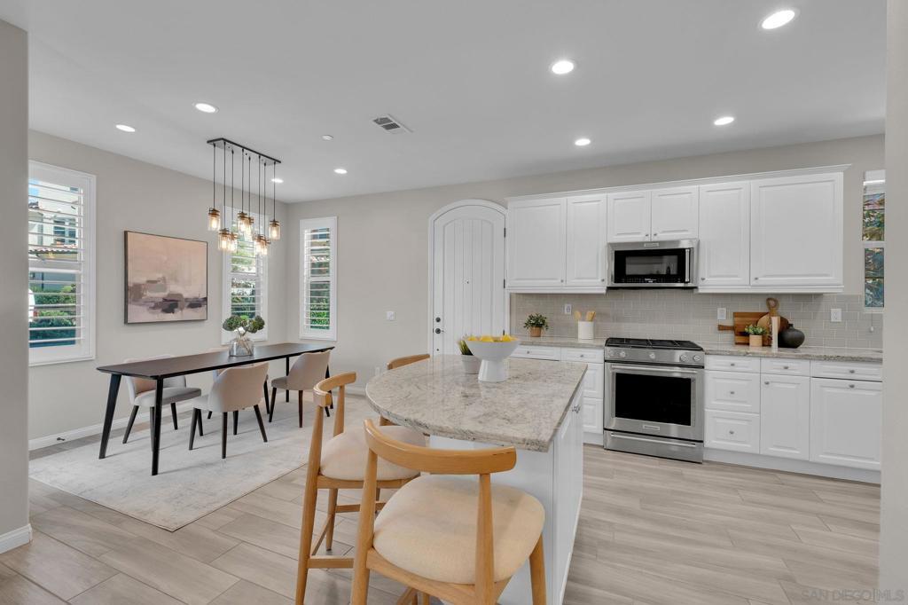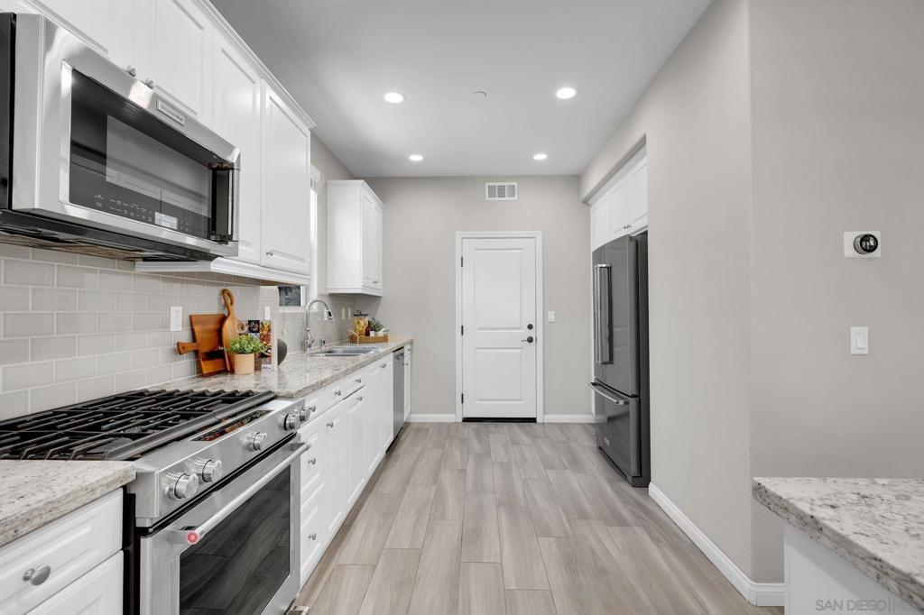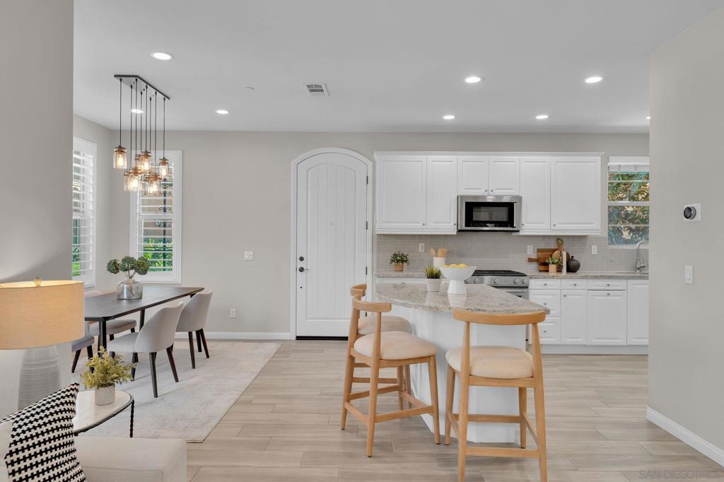This lovely 3BR + loft townhome is situated in a quiet gated community in beautiful Del Sur. The home is bright and airy, with abundance of natural light throughout. The open-concept floor plan features a great room and a modern kitchen complete with white cabinets, granite counters, stainless steel appliances, and a gourmet island. The dining area is perfect for gatherings and flows out to a cozy patio. The second floor offers spacious bedrooms and a master retreat with a soaking tub and walk-in closet, while the third floor features a spacious and versatile loft. Additional features include an efficient central HVAC system with dual temperature control and a tankless water heater. Embrace a lifestyle of modern luxury with Google smart thermostat, 240V EV Charger ready, Minka-Aire fans throughout, new LVP flooring, and a new refrigerator. This amenity-rich gated community is within walking distance of the famed Del Norte High School and includes a grand pool, spa, BBQ area, tot-lot, and dog park. It is also conveniently located near shops, parks, and freeways for an easy commute. Welcome home!