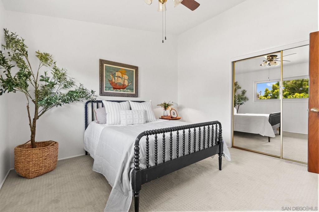 First time on the market in over 50 years, this well-cared-for home sits on a large corner lot in North Clairemont. Spacious and flexible layout featuring an updated kitchen, vaulted ceilings, and an open living room with fireplace. Large sliders lead to a charming backyard patio, creating easy indoor-outdoor flow. The main level offers 3 bedrooms and 2 bathrooms, including one with direct access to an oversized patio-perfect for entertaining. Upstairs includes 2 additional bedrooms and a full bath, with the option to create a generous primary suite. Enjoy elevated canyon views and a consistent coastal breeze. Attached 2-car garage plus dedicated RV parking! The main systems of the home have been updated with owned solar, newer roof, furnace, tankless water heater! Owner has invested 25k to replace the older windows and slider in April! Ideally located just minutes from La Jolla, the beach, Bay Park, and all that San Diego has to offer. A wonderful home, ready for its next chapter after decades of care!