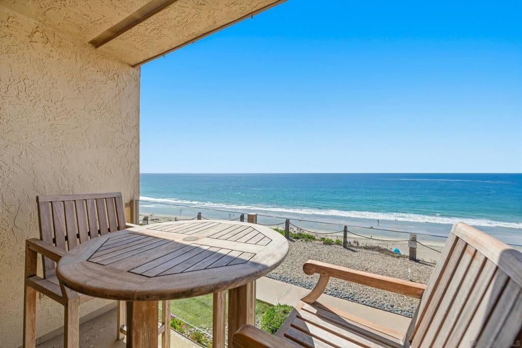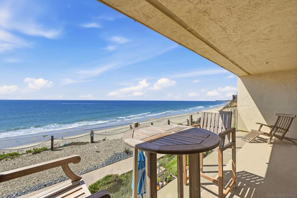 Perched atop the bluff with sweeping ocean views that bring the Pacific into your living room, this coastal residence offers a rare opportunity in one of Solana Beach’s most coveted oceanfront communities. This 2-bedroom, 2-bath home showcases panoramic ocean vistas, vibrant sunsets, and the beauty of the coastline where surfers glide below, seabirds soar, and dolphins + whales occasionally appear. Designed for effortless living, the open layout is filled with natural light, enhanced by thoughtful finishes including tile flooring, granite counters, and expansive dual-pane windows that frame the sea like artwork. A full wall of glass opens to a covered deck, seamlessly blending indoor and outdoor living while capturing the sound of waves, fresh sea breezes, and uninterrupted blufftop views, perfect for morning coffee or sunset evenings, sometimes even revealing the elusive green flash. Solana Beach & Tennis Club features resort-style amenities including tennis courts, pool, spas, recreation room, and a view lounge, along with direct beach access just steps away. The property includes two reserved garage parking spaces, EV charging, additional storage, and convenient access for easy living. Ideally located just moments from the Cedros Design District, with its vibrant mix of shops, galleries, restaurants, the train station, and some of North County’s most desirable coastal attractions. Whether as a primary residence, second home, or investment, this is a rare chance to own true oceanfront living on the bluff.