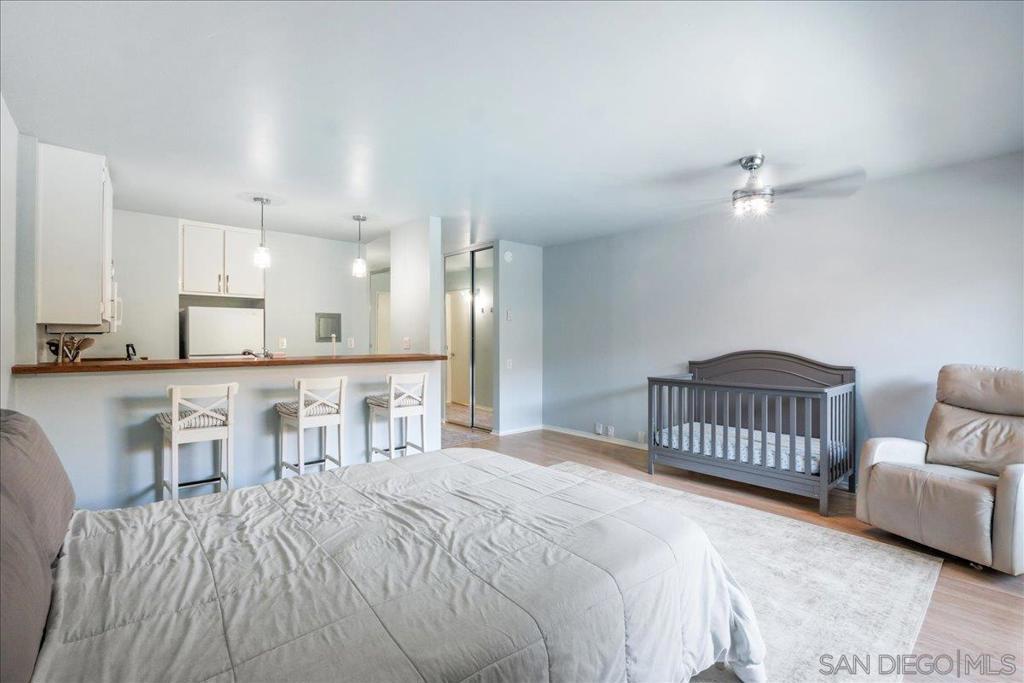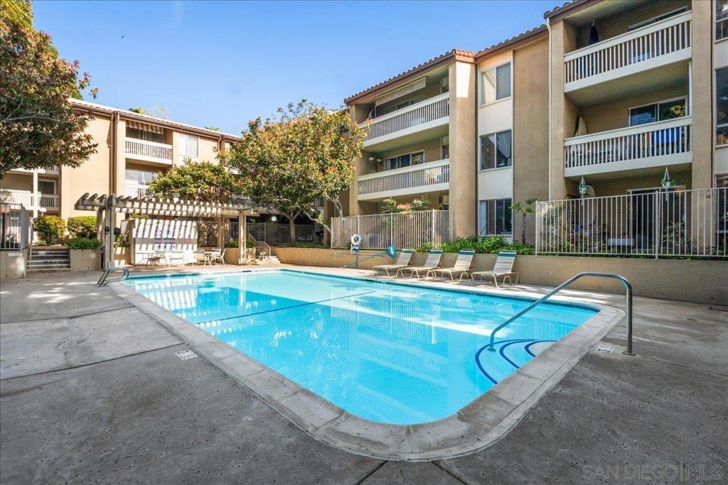 Charming and well-maintained studio condo in the heart of highly desirable Pacific Beach, San Diego. This bright, south-facing unit is filled with natural light and features sleek laminate flooring and an efficient open layout designed for comfortable, functional living. The kitchen includes a dishwasher, refrigerator, and bar-style seating perfect for casual dining or entertaining. Step onto your private balcony to enjoy fresh air and serene views of the pool and garden. The community offers resort-style amenities, including a heated pool, spa, sauna, fully equipped gym, clubhouse, and tennis court. Additional conveniences include assigned garage parking, on-site laundry, and easy elevator access. Minutes from Mission Beach, Seaworld, La Jolla and Kate Sessions Park.