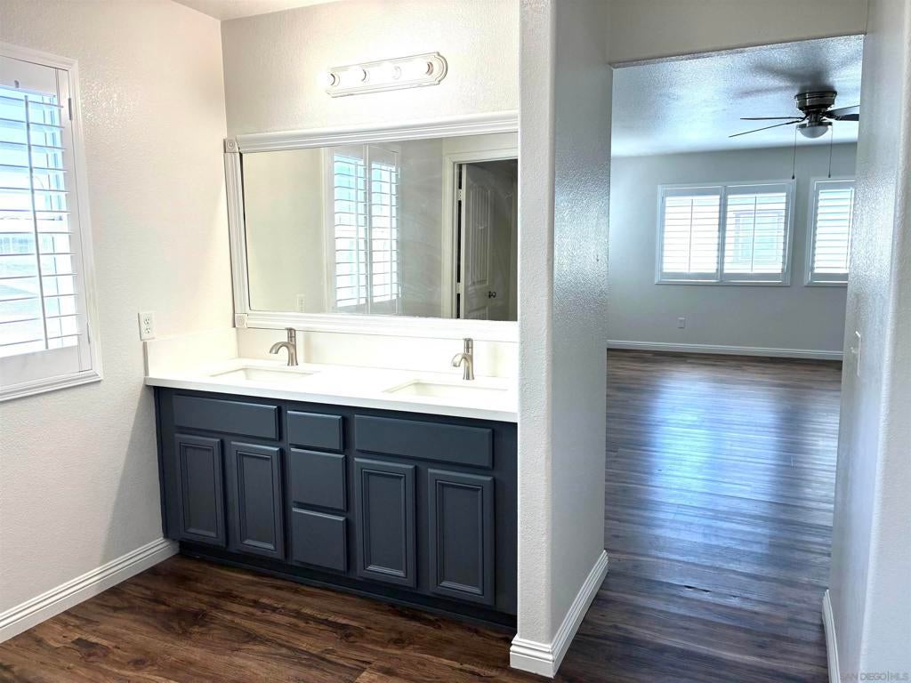 Welcome to this beautiful 5-bedroom, 3-bathroom home offering 3,206 square feet of spacious living in the desirable Rosetta Canyon Community. Perfectly situated across from a peaceful grassy knoll, this home combines comfort, style, and convenience. Step inside to discover a bright and open layout, freshly enhanced with newly painted interior walls and stylishly updated blue kitchen cabinets that add a modern touch. A highly sought-after feature, the main level includes a full bedroom and a hallway bathroom—ideal for guests or multi-generational living. Upstairs, you’ll find an oversized master bedroom with a cozy retreat, and 3 additional bedrooms, each equipped with ceiling fans for year-round comfort. The kitchen flows seamlessly into the break nook and expansive great room perfect for everyday living and entertaining. Enjoy the convenience of being just minutes from shopping, dining, and easy freeway access, making commuting a breeze. This spacious home, in a prime location, is the perfect blend of functionality and charm—don’t miss the opportunity to make it yours!