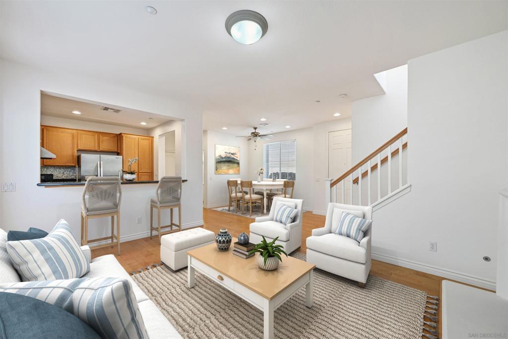Located in the heart of the highly desirable 4S Ranch community within the Amante enclave, this detached home offers the privacy of a single-family residence with the price point of a townhome. The entry level features an open and inviting floor plan where the living, dining, and kitchen areas flow seamlessly together, creating a comfortable space for both everyday living and entertaining. The living room is highlighted by a cozy fireplace, adding warmth and charm to the main gathering area. Upstairs, all bedrooms are thoughtfully positioned for privacy along with a convenient laundry room. The spacious primary suite and additional bedrooms provide comfortable retreats for all. The home also includes a two-car attached garage with ample storage space, making organization easy. Outside, the side yard offers a perfect spot to relax, unwind, or enjoy outdoor dining. Ideally located for convenience and lifestyle, this home allows you to skip the carpool lines and instead enjoy a pleasant stroll or bike to the local elementary school, nearby 4S Heritage Park, and the community’s popular shopping and dining destinations. With its prime location, functional layout, and detached-home living at an exceptional value, this residence presents a wonderful opportunity in one of North County’s most sought-after neighborhoods.