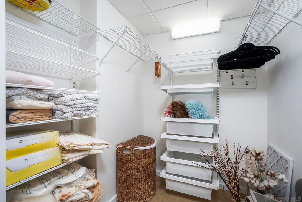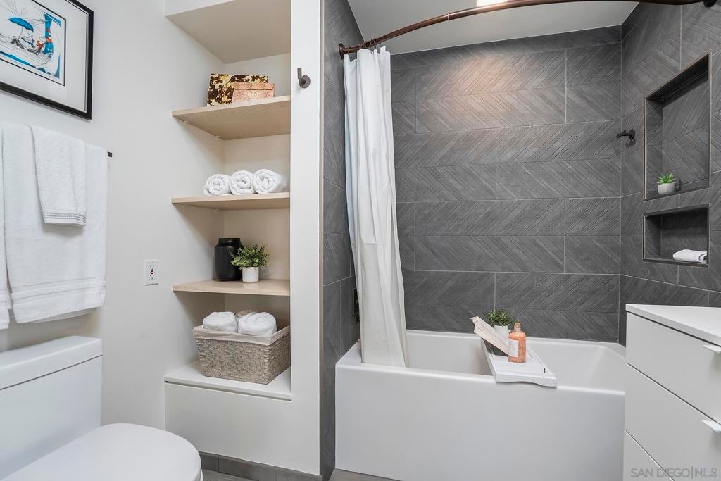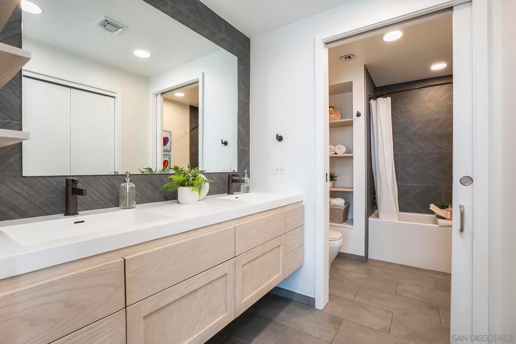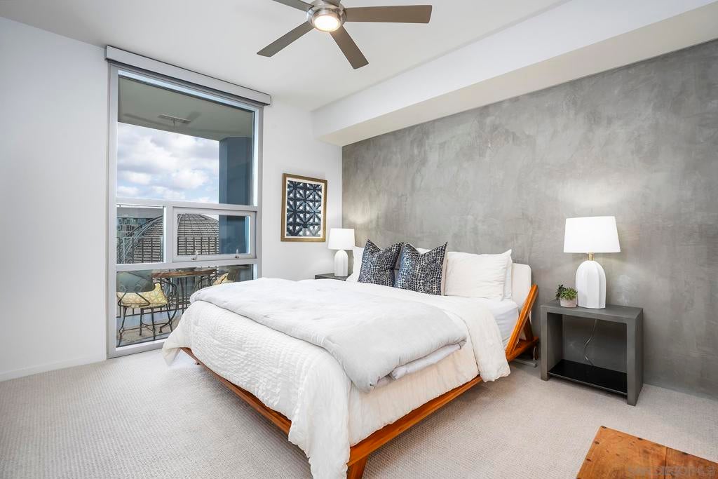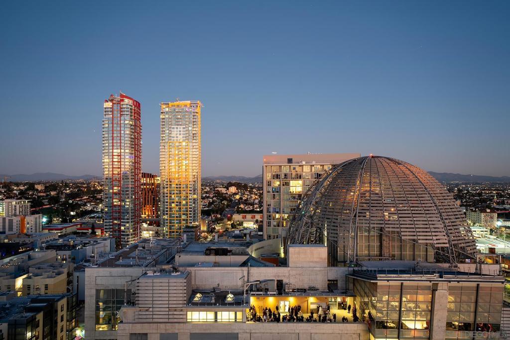 Experience elevated downtown living in this highly customized 2-bedroom, 2-bath residence at ICON, a premier concrete and steel high-rise in the heart of East Village. Sweeping northwest-to-southwest views stretch beyond the skyline to include the San Diego Central Library, distant mountain ranges, and glimpses of the bay. Floor-to-ceiling tinted windows frame the scenery while enhancing privacy and comfort throughout the home. Extensive custom upgrades set this residence apart, including a built-in Sonos sound system discreetly integrated within the walls for a clean, immersive experience. The primary suite is a true retreat, featuring automated blinds and a spa-inspired bath. A stackable washer and dryer are conveniently located in the in-unit closet, and nearly every detail has been thoughtfully customized for modern urban living. ICON delivers a secure, full-service lifestyle with controlled-access lobbies, underground parking, 24-hour on-site property management and staff, and residential trash chutes on every floor. The home includes secure two-car tandem garage parking. Residents enjoy a 1,700-square-foot fitness center with WiFi, a community theater room with raised seating and a 135-inch HD screen, and the 5th Inning Community Lounge with a full kitchen, TV, WiFi, and comfortable seating ideal for larger gatherings. The rooftop Skybox and viewing terrace, located across the street from Petco Park, offer unobstructed ballpark views with BBQs, surround sound, space heaters, and WiFi—perfect for enjoying games, concerts, and city events year-round!