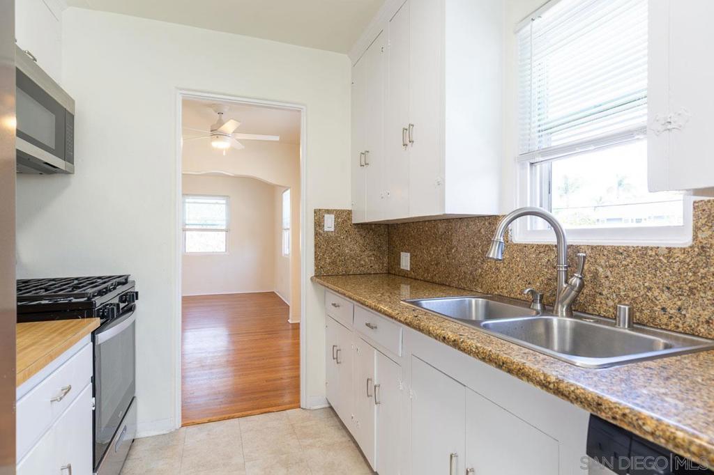 Fully detached home in a highly desirable central village location. This versatile property offers tons of options! The first level features a private bedroom with a full bath, ideal for guests, a home office, or bonus living space. Two separate one-car garages provide ample parking and storage—an uncommon convenience in Coronado. Upstairs, the main living area showcases timeless character with original, stunning wood floors, classic decorative archways, and abundant natural light. The second level includes a spacious living room, dining room, kitchen, bedroom and bath. Newer vinyl windows throughout.