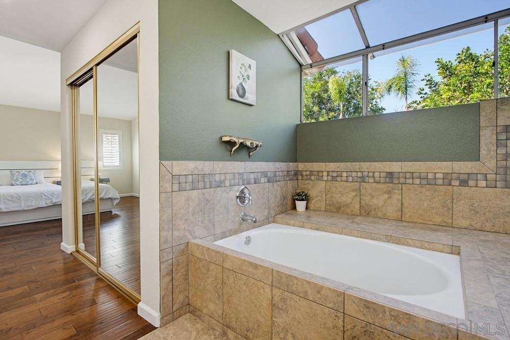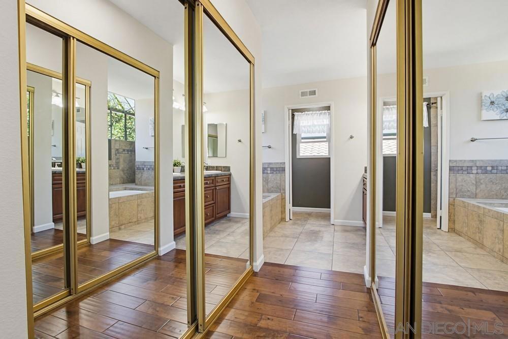 Located in the highly coveted East of Park Village, this beautifully upgraded home features soaring vaulted ceilings in the living room and abundant natural light, creating a bright and inviting atmosphere. A highly desirable main-level bedroom and full bath adds flexibility for guests or multi-generational living. Enjoy hardwood flooring and partial tile throughout (No Carpet!), dual-pane windows with plantation shutters, and newer exterior paint. Solar panel for energy efficiency. The updated kitchen is appointed with granite countertops, refreshed cabinetry, and stainless steel appliances, all overlooking serene lush backyard through expansive bay windows. The spacious primary suite offers high ceilings and dual closets, while all bathrooms have been tastefully remodeled with cherry cabinetry, tiled showers, and frameless glass enclosures. An oversized upstairs bonus room provides versatile space ideal for a media room, office, or play area. Step outside to a private, beautifully landscaped backyard, perfect for relaxing or entertaining. Updated with drip irrigation for efficient water conservation. Built-in cabinet, Water filtration system for entire house, and epoxy floor in the garage. Ideally located within walking distance to the public library and YMCA, and served by top-rated schools—Canyon View Elementary, Mesa Verde Middle, and Westview High School. Convenient access to shopping, dining, and I-56 completes this exceptional offering. No HOA and No Mello-Roos!