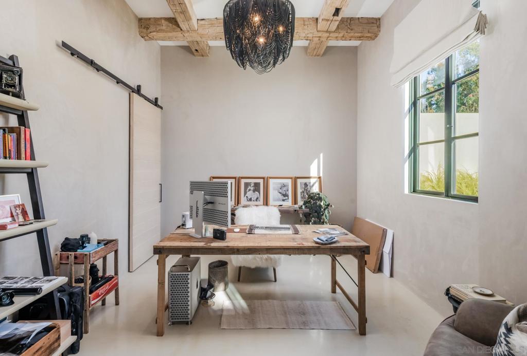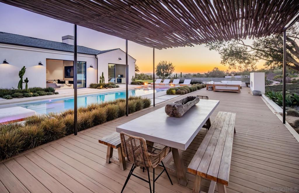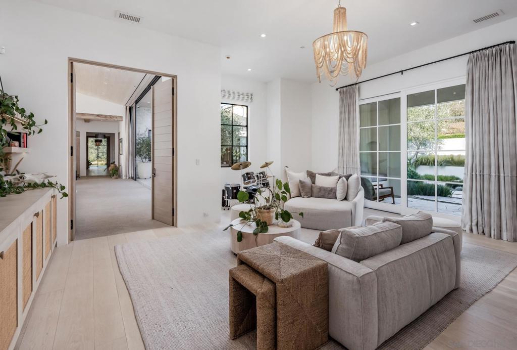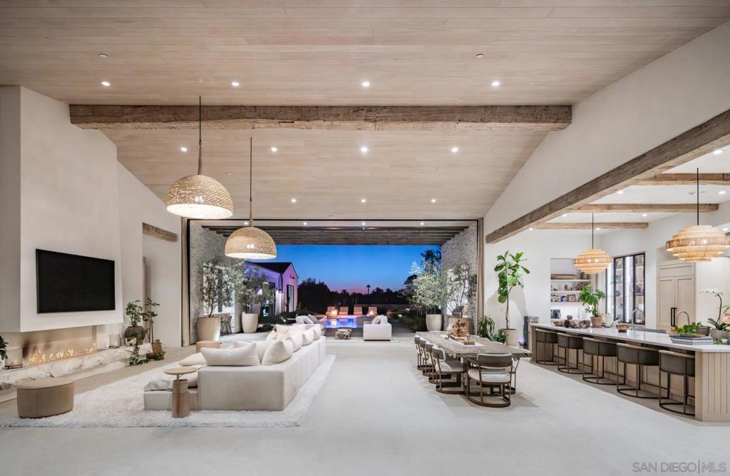 Nestled within a prestigious gated community in Rancho Santa Fe, this monumental "Californian Modern organic" estate featured in Wall Street Journal is a breathtaking triumph of architectural precision and soulful design. Meticulously crafted from the ground up over three years, the residence serves as a grounded sanctuary that seamlessly connects to its natural surroundings using timeless organic materials. Rejecting the predictable layout of traditional luxury, the home welcomes guests through a curated courtyard experience that flows effortlessly into a great room and gourmet kitchen. Here, monumental 16-foot tall steel pocket sliders dissolve the boundaries between indoors and out, acting as a transparent lens for the property's stunning sunset views. Every detail was executed with a "no room for error" philosophy, utilizing bespoke steel finishes that allow every door to look and function like a window. At the creative heart of the home lies a serene photography studio bathed in natural light, offering a "quiet spirit" inspired by the grace and presence of the equestrian lifestyle. Beyond its striking aesthetics, this 2.44-acre estate is an elite environment engineered for unparalleled wellness, recreation, and longevity. The primary suite functions as a private high-performance retreat, complete with a personal spa, built-in sauna, and steam room. Operating with the effortless sophistication of a five-star resort, the residence boasts one of San Diego’s most advanced automation systems, featuring hidden "mud in" speakers for ubiquitous sound and a centralized climate command center that removes visual clutter via discrete room sensors. The dedication to bespoke luxury extends to the outdoors, where a state-of-the-art golf simulator and a custom "Back nine greens" putting surface await alongside a culinary kitchen island featuring custom dual pasta-board pullouts. Secluded behind dual gates and protected by a hidden safe room, the tranquil grounds are a sustainable ecosystem of ancient oaks, citrus groves, and lush lavender. To ensure this pristine landscape remains an uncontaminated sanctuary for generations, a dedicated, architecturally matched maintenance shed houses equipment used exclusively on the property.