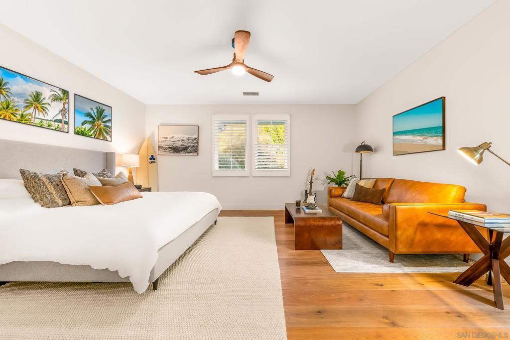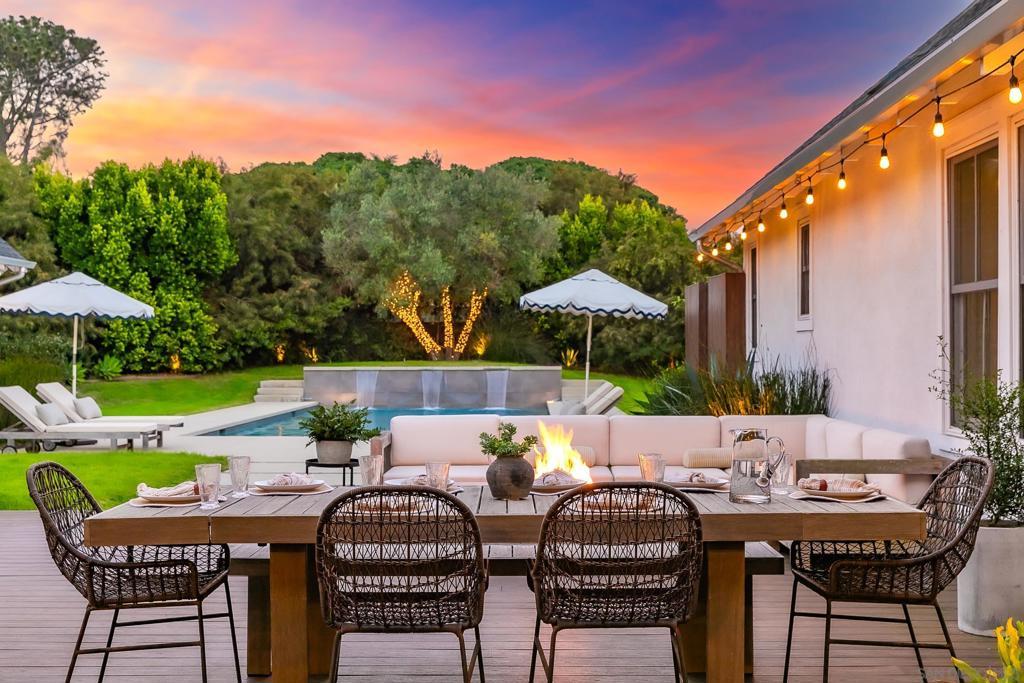 MID-TERM ONLY FURNISHED RENTAL - AVAILABLE STARTING JUNE 1 - Encinitas Coastal Farmhouse Retreat with Pool, Spa & Guest Suite Welcome to this luxurious coastal retreat blending farmhouse elegance with resort-style living just 1.5 miles from the beach. This expansive property features a main house and detached guest suite, offering the ideal setup for families, groups, or extended stays. The single-level main home includes four bedrooms and 3.5 baths with an open-concept layout, vaulted ceilings, and seamless indoor-outdoor living. The chef’s kitchen features stainless appliances, a large island with seating for four, and flows into a dining area for eight and a spacious living room with La Cantina doors opening to the backyard. Outside, enjoy a resort-style setting with a pool with waterfall and baja ledge, spa, fire pit, fireplace, built-in BBQ, and multiple lounge and dining areas surrounded by a large grassy yard. The primary suite offers a spa-like bath with soaking tub, dual vanities, glass shower, and access to an outdoor shower with cold plunge and cedar sauna. A second en-suite bedroom, two additional bedrooms with jack and jill bath, and a flexible fourth bedroom or gym complete the main house. Additional features include a game room with pool table, dedicated office with three workstations, air conditioning, laundry, and included bikes and beach gear. The detached guest suite provides a private living space with a queen bed. Sleeping setup accommodates up to twelve guests. Rates vary by season and length of stay. Published amounts are estimates. The main house has a spacious single-story layout, featuring 4 bedrooms and 3.5 baths for ample accommodation. Step inside to discover an inviting open-concept design, where the kitchen, dining, and family room converge under vaulted ceilings bathed in natural light. Stainless steel appliances, ample storage, and a large kitchen island with barstool seating for 4 ensure every culinary endeavor is a delight. The adjacent round dining table is complete with seating for up to 8 guests. From the spacious living area, 26 ft custom La Cantina doors open up to the magical backyard. The expansive deck features an ambient fireplace and fire pit that beckons for cozy evenings under the stars. Enjoy alfresco dining for 6-7 people and whip up a feast on the built-in BBQ. A 42 ft long swimming pool with waterfall feature and baja ledge, along with a jacuzzi, is surrounded by the natural beauty of the large, open grass area. Revel in endless relaxation on the sunny lounge chairs. At the end of the day, retreat to the primary bedroom with its en-suite bathroom, complete with large soaking tub, glass-enclosed shower, and two separate vanities. Private access to an outdoor shower area adds a touch of luxury, boasting a cold plunge and cedar sauna. The second, primary bedroom boasts its own en-suite bathroom, while two additional guest bedrooms share a convenient jack and jill bathroom. The fourth bedroom offers versatility as a queen bedroom or a fully equipped home gym, featuring a Peloton, row machine, bench press, and more. Entertainment awaits in the game room with an 8 ft pool table, perfect for friendly competitions and laughter-filled evenings. Need to catch up on work? A dedicated home office with 3 workstations offers a tranquil space to focus. Additionally, the detached guest house offers a private sanctuary with a comfortable living area on the first floor and a queen bed upstairs, providing the perfect escape for couples or families. Added conveniences include air conditioning, washer and dryer, weekly housekeeping, 2 electric bikes, surfboards, boogie boards, and a paddleboard provided for your enjoyment. SLEEPING ACCOMMODATIONS (Maximum: 12 Guests) Bedroom 1 - 1 King bed Bedroom 2 - 1 King bed Bedroom 3 - 1 Queen bed Bedroom 4 - 1 Queen bed Bedroom 5 (Detached guest suite)- 1 Queen bed Shared Space - 1 Sofa sleeper Known for its surf culture and laid-back vibe, Encinitas ...