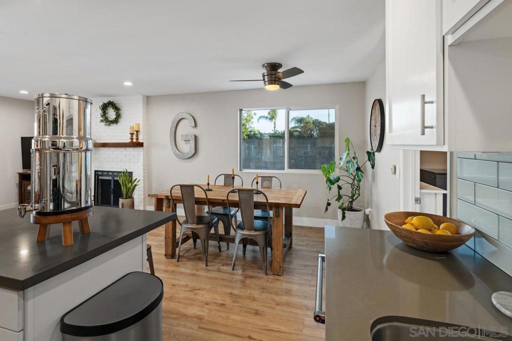Welcome to this beautifully updated, turnkey single-story home on a spacious corner lot in the highly desirable Carlton Country Club Estates neighborhood of Santee. Tucked at the end of a quiet cul-de-sac and directly adjacent to the stunning Santee Lakes Recreation Preserve, this property offers the perfect blend of modern comfort and outdoor adventure. Located in Santee's top-rated school district, the home is served by Carlton Hills Elementary (9/10), Grossmont Middle (10/10), and West Hills High School (9/10)—ideal for families. Welcome to this beautifully updated, turnkey single-story home on a spacious corner lot in the highly desirable Carlton Country Club Estates neighborhood of Santee. Tucked at the end of a quiet cul-de-sac and directly adjacent to the stunning Santee Lakes Recreation Preserve, this property offers the perfect blend of modern comfort and outdoor adventure. Inside, the 3-bedroom, 2-bathroom floor plan (1,274 sq ft) feels bright and welcoming. Recent updates include new laminate flooring throughout the main living areas (bedrooms remain carpeted for comfort), a completely refreshed guest bathroom with a new vanity, stylish subway tile shower, and updated light fixture, plus a fresh mantel over the cozy fireplace. A brand-new sliding door installed in 2026 opens seamlessly to the backyard, while blown-in insulation and an upgraded main electrical panel (2020) add efficiency and peace of mind. The roof was replaced in 2019 with a 50-year warranty for long-term protection. Step outside to enjoy the thoughtfully landscaped backyard featuring pavers, low-maintenance turf, excellent drainage, and a practical 10x12 Tuff Shed for extra storage. The front yard boasts a new concrete walkway and attractive rock pebble landscaping for effortless curb appeal. This move-in-ready gem also includes a refrigerator, washer/dryer, and the existing ADT security system equipment—all conveying to the lucky buyer. Located in Santee's top-rated school district, the home is served by Carlton Hills Elementary (9/10), Grossmont Middle (10/10), and West Hills High School (9/10)—ideal for families. Best of all, living here means having Santee Lakes as your backyard playground. Enjoy fishing in stocked lakes, miles of scenic walking and biking trails, boating, picnics, playgrounds, and year-round events just steps away. Whether you're casting a line, spotting wildlife, or simply unwinding by the water, this location delivers resort-style living every single day. Don't miss this rare opportunity to own a updated home in one of Santee's most convenient and recreational spots.