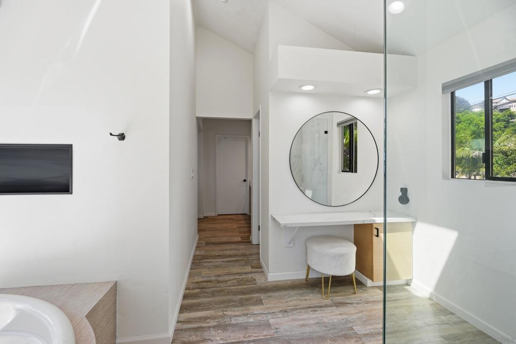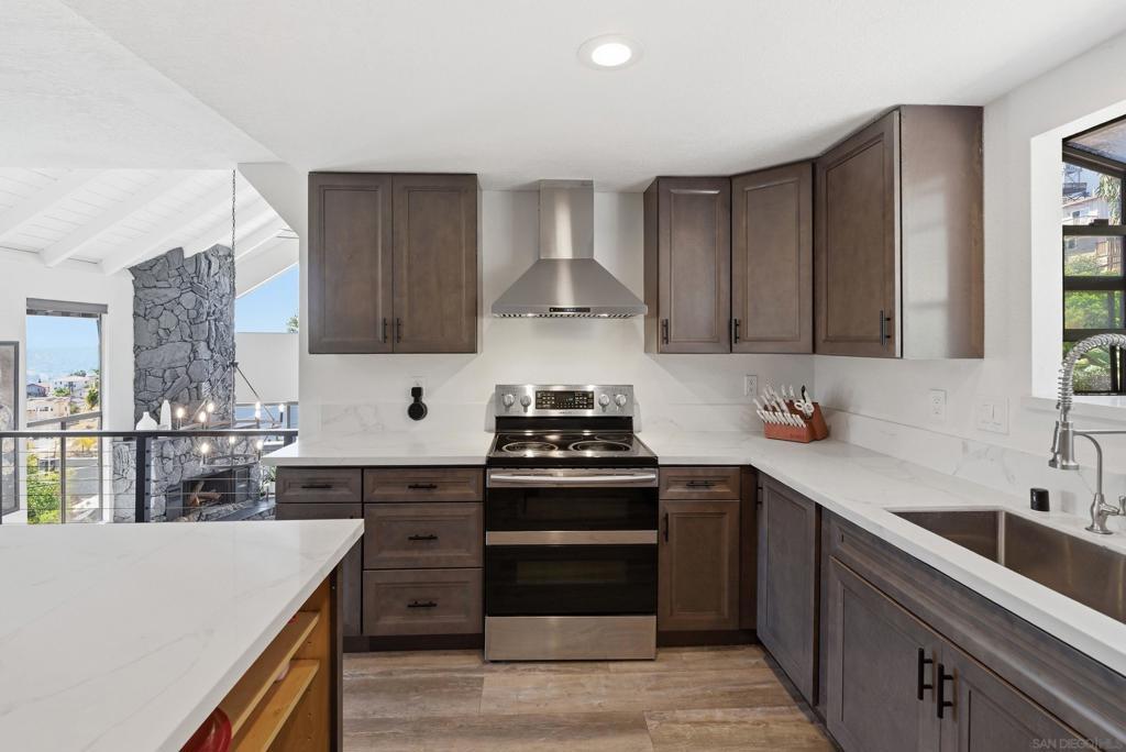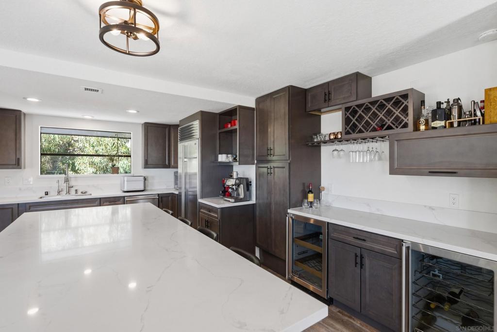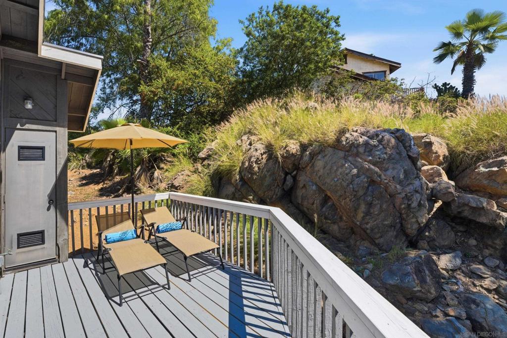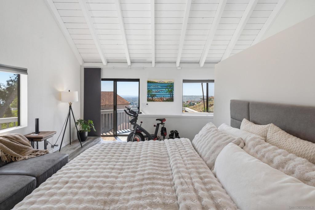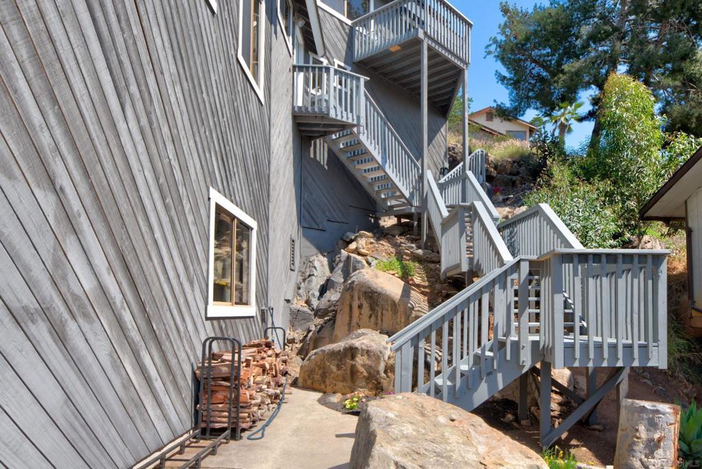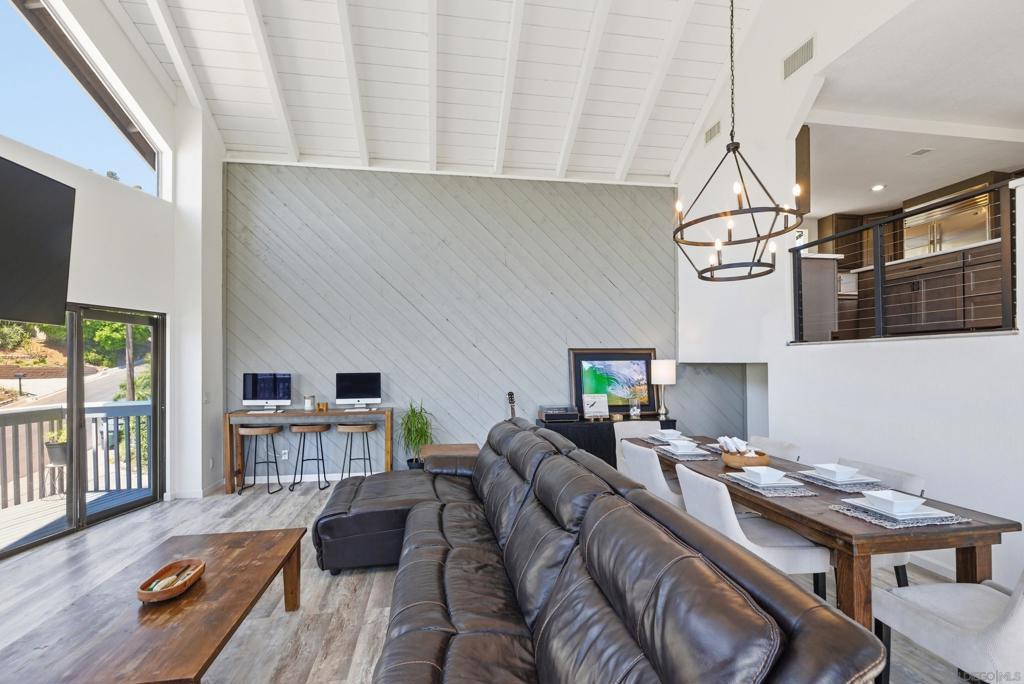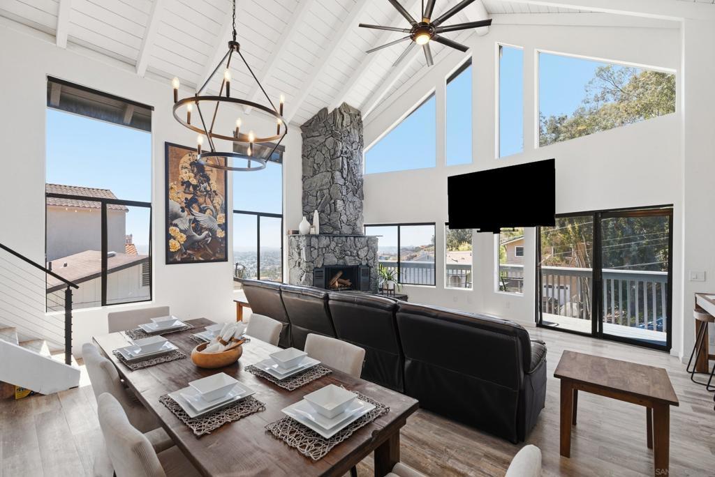 Perched high above Sweetwater Reservoir in the coveted Dictionary Hill neighborhood, this one-of-a-kind architectural retreat offers the rare feeling of living in your own private treehouse—where sweeping panoramic views stretch from the reservoir to the Pacific Ocean, and a cool ocean breeze flows year-round. Designed to impress, the dramatic living room showcases soaring 25-foot exposed beam ceilings, expansive two-story windows that flood the space with natural light, a stunning stone fireplace, and a private balcony perfectly positioned to capture the surrounding scenery. The renovated kitchen blends luxury with functionality, featuring sleek quartz countertops, soft-close cabinetry and pull-out drawers, an oversized center island with abundant storage and recessed lighting. High-end appliances include a Sub-Zero refrigerator, Viking wine fridge, Viking beverage fridge, and a newer Viking dishwasher - ideal for both everyday living and entertaining. The top floor is dedicated to an exceptional primary suite retreat, offering unmatched privacy and breathtaking views. Enjoy your 2 separate, private decks, skylights, custom California Closet system, and motorized shades—creating a serene escape above it all. Two additional spacious bedrooms on the main level each feature direct access to private decks, extending indoor-outdoor living throughout the home. See Supplement section for additional insight! Thoughtful upgrades elevate every corner, including fresh interior paint, modern lighting and hardware, ceiling fans throughout, custom solar shades, new stair railings, upgraded electrical for seamless TV mounting, and a striking Precision garage door. Additional enhancements include a whole-house PureAgain water filtration and alkaline system, Blink and Ring security system, new skylight, and drought-tolerant refreshed landscaping. Energy efficiency meets sustainability with 16 fully paid solar panels, keeping utility costs low while maximizing comfort. A rare opportunity to own a truly distinctive home that combines bold architectural design, modern luxury, and an unbeatable indoor-outdoor lifestyle—all just minutes from San Diego amenities. Move-in ready and eligible for FHA and VA financing. Come live the dream!
