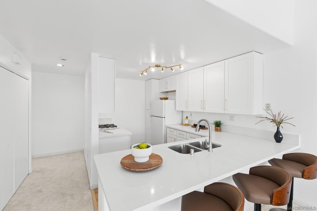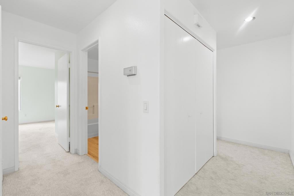 VA APPROVED! Welcome to the highly desirable Sanibelle community—this corner end-unit, upper-level 2-bedroom, 2-bath condo offers the perfect blend of comfort and convenience. Enjoy single-story living with soaring vaulted ceilings and abundant natural light throughout. The home features a functional layout with a tastefully updated kitchen, spacious living and dining areas, and well-sized bedrooms, including a private primary suite. The inviting living room offers a cozy gas fireplace and direct access to a private balcony—perfect for relaxing or enjoying your morning coffee. The home is equipped with central A/C and features extra plush, newly installed carpet. A convenient in-unit laundry closet is located in the hallway. Additional highlights include an attached garage with a newer upgraded garage door installed in 2024, an extra assigned parking space, and two guest parking passes—an incredibly rare combination. Enjoy added value with NO Mello-Roos and a low HOA. Ideally located just minutes from the 805 freeway and within walking distance to Clear View Elementary, shopping, restaurants, and public transportation. Nearby Terra Nova Park offers basketball and tennis courts, playgrounds, and a softball field. Plus, enjoy close proximity to the Gaylord Pacific Resort. Move-in ready and a rare opportunity you don’t want to miss!