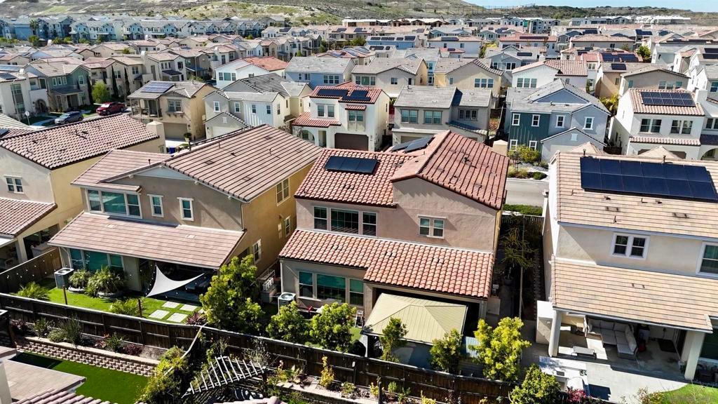 You found your stunning dream home! This Open-Concept layout boasts a gourmet kitchen with quartz countertops and laminate flooring throughout. Enjoy the backyard retreat that features a covered patio with an outdoor fireplace, a spacious gazebo, and low-maintenance landscaping with artificial turf. A private suite bedroom with huge walk-in closet for multi-generational living options on the first floor. Paid-off solar system with an EV charger. Escaya’s resort-style amenities includes a clubhouse, pool, parks, and a fitness center. You found your stunning dream home! This Open-Concept layout boasts a gourmet kitchen with quartz countertops and laminate flooring throughout. Enjoy the backyard retreat that features a covered patio with an outdoor fireplace, a spacious gazebo, and low-maintenance landscaping with artificial turf. A private suite bedroom with huge walk-in closet for multi-generational living options on the first floor. Paid-off solar system with an EV charger. Escaya’s resort-style amenities includes a clubhouse, pool, parks, and a fitness center.