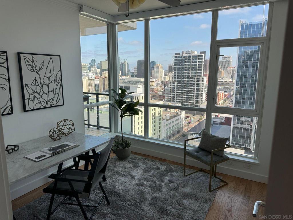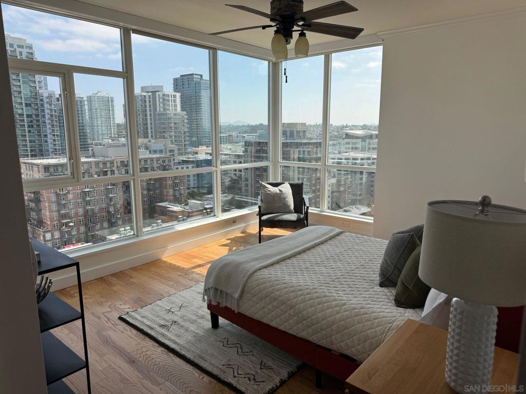 Enjoy the panoramic views and city lights from the 17th floor of this beautiful two-bedroom two bath unit at The Legend just steps from Petco Park and the Gaslamp Quarter. This unit has floor to ceiling windows, an open concept kitchen and living room area with balcony access. The master bedroom features a large walk in closet and updated bathroom with double vanity. Floor to ceiling windows in the second bedroom provides lots of natural light. A stackable washer and dryer included in the unit. This secure building comes with plenty of amenities including a 7th floor deck with BBQ's, TV's, outdoor lounge area and fire pits. The 2nd floor amenities include a fitness room, pool, spa, sauna and community room. An assigned underground garage parking space, on-site guard and concierge are also included. From its central location on 7th Avenue between J and K streets, The Legend is just steps away from some of San Diego’s main attractions. The city will literally be at your door–step. PETCO Park, voted MLB's Number 1 baseball stadium, World-class San Diego Main Library facility at 11th and J, exciting restaurants, entertainment and shopping in the Ballpark District and the Gaslamp Quarter, all within easy walking, trolley or pedicab distance. San Diego Trolley just blocks away for easy, safe and fun transportation. Quick access to freeways, the airport and commuter bus lines. MLK Promenade, Embarcadero, Marina and Urban Art Trail within steps of your front door for recreational walking, jogging, roller-blading, biking and more. A stackable washer and dryer included in the unit. This secure building comes with plenty of amenities including a 7th floor deck with BBQ's, TV's, outdoor lounge area and fire pits. The 2nd floor amenities include a fitness room, pool, spa, sauna and community room. An assigned underground garage parking space #98, on-site guard and concierge are also included. From its central location on 7th Avenue between J and K streets, The Legend is just steps away from some of San Diego’s main attractions. The city will literally be at your door–step. PETCO Park, voted MLB's Number 1 baseball stadium, World-class San Diego Main Library facility at 11th and J, exciting restaurants, entertainment and shopping in the Ballpark District and the Gaslamp Quarter, all within easy walking, trolley or pedicab distance. San Diego Trolley just blocks away for easy, safe and fun transportation. Quick access to freeways, the airport and commuter bus lines. MLK Promenade, Embarcadero, Marina and Urban Art Trail within steps of your front door for recreational walking, jogging, roller-blading, biking and more.