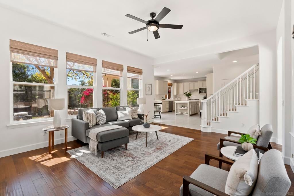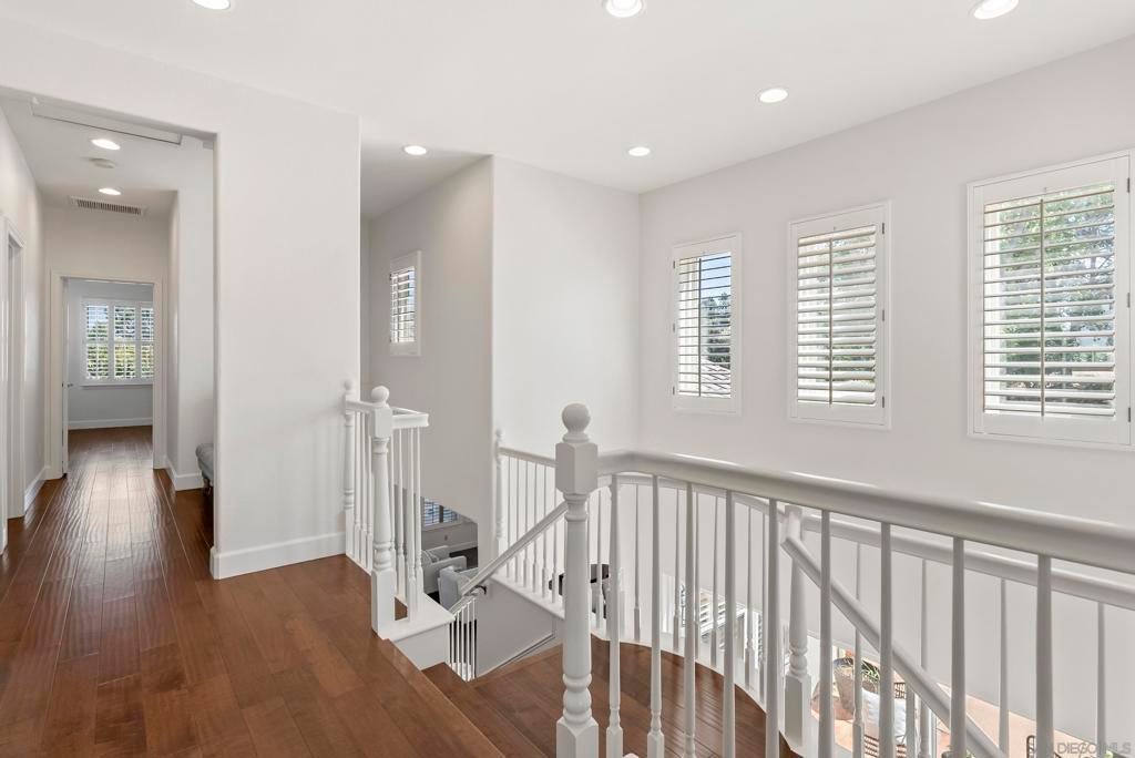 Stunning, light-filled 4-bedroom, 3-bathroom home located in the highly desirable Torrey Hills community. Superior elevation and south-west exposure provides warmth of natural light and beautiful sunsets over the treelined hillsides. Situated on a corner lot of a quiet cul-de-sac, this residence offers the perfect balance of peaceful living and convenient access to everything Carmel Valley has to offer. The main level features elegant formal living and dining rooms, guest bedroom, a beautifully appointed kitchen, and spacious family room ideal for both relaxing and entertaining. Natural light pours throughout the home, creating a warm and inviting atmosphere. Upstairs, unwind in the luxurious primary suite, a generous walk-in closet, and a stunning ensuite bathroom designed for comfort and style. Step outside to a beautifully landscaped yard that feels like a private retreat. Enjoy nearby parks, biking trails, and soccer and baseball fields - perfect for staying active and making the most of sunny San Diego days. Located just minutes from top-rated schools, leading science and research centers, and some of Southern California’s most exceptional coastal beaches, this home truly offers the best of lifestyle and location.