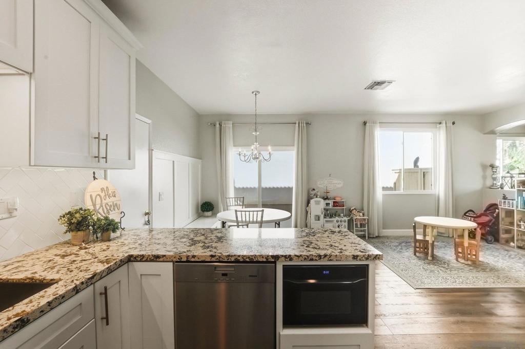 Do not miss this updated 4-bedroom home in Otay Ranch. Located in a quiet neighborhood, this move-in-ready home offers a spacious layout, abundant natural light, and thoughtful upgrades throughout. Improvements include new dual-pane windows throughout the home, soundproof windows in the primary bedroom, new flooring downstairs, a remodeled kitchen, a newer HVAC system (approx 5 years old), a new water heater, and more. The first floor features a spacious and functional layout with a living room, dining room, and family room that opens to the remodeled kitchen and breakfast nook. The kitchen has been updated with white shaker cabinets, quartz countertops, stainless steel appliances, and a walk-in pantry. Also on the main level are a half bath, attached 2-car garage, and a low-maintenance backyard designed for easy outdoor living. Upstairs, you’ll find the primary suite with a walk-in closet and an en suite bathroom with dual sinks. Three additional bedrooms and one full bathroom complete the second floor. Residents enjoy access to community amenities, including a swimming pool, clubhouse, playgrounds, parks, BBQ area, and basketball court. Conveniently located near schools, shopping, dining, and everyday services, this home is a great opportunity for buyers seeking space, updates, and a desirable Otay Ranch location.