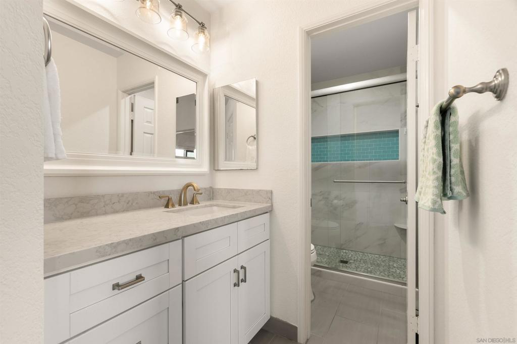 Welcome to this beautifully upgraded townhome on a quiet street within the highly valued La Jolla School District, walking distance to Bird Rock, PB, beaches, shopping, dining, and everyday essentials. This move-in ready home features a fully renovated, modern coastal interior with a quartz countertop kitchen, Whirlpool appliances, main-floor powder room, and in-unit washer and dryer. The open-concept layout flows seamlessly to a private 180 sq ft patio, perfect for indoor-outdoor living and entertaining. Upstairs, the primary suite offers vaulted ceilings, a walk-in closet, and a spacious en-suite bathroom. The second bedroom includes its own en-suite bath, ideal for guests, roommates, or a home office. Additional features include a private 1.5-car garage with extra storage and a dedicated parking space directly in front. Rare opportunity to own a turnkey gem in one of San Diego’s most desirable coastal communities.