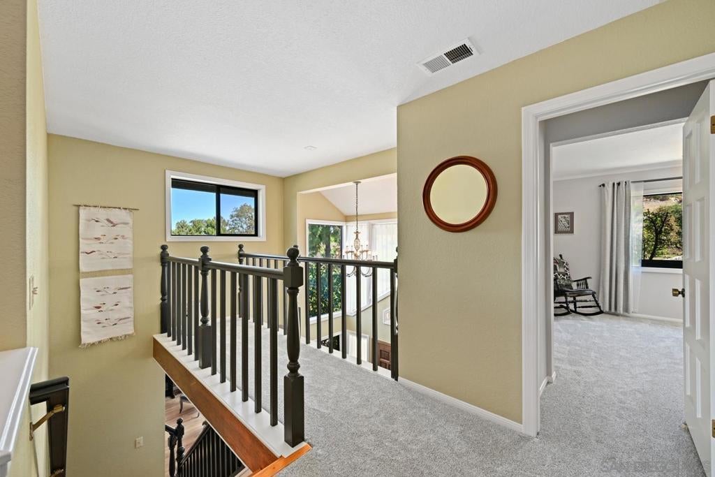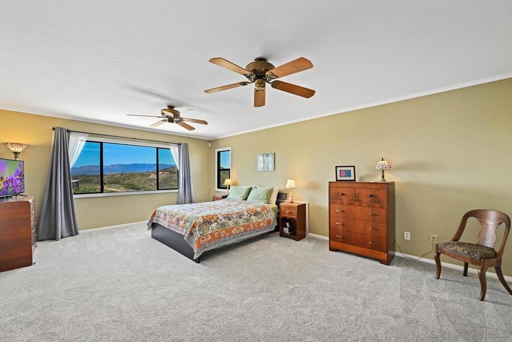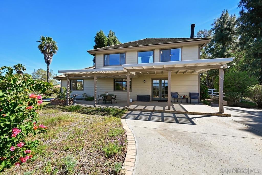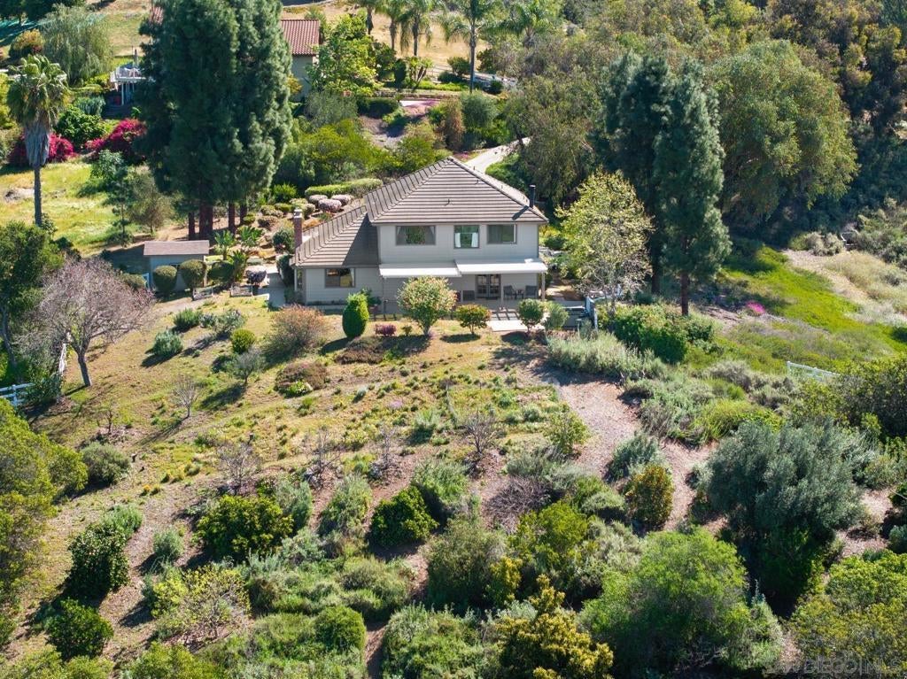 Beautiful 4 bedroom plus office custom home set on 4.23 spectacular view acres at the end of a peaceful cul-de-sac. This 2 story home offers privacy, sweeping views, diverse landscaping and a productive organic family fruit tree orchard which provides a continual variety of fruit. The property is immersed in nature while still being walking distance to Fallbrook’s charming Main Street. Inside, the layout features a mix of formal and casual living spaces. The dedicated living room has soaring ceilings and a beautiful brick fireplace. An adjacent dining room is a highlight with its West and North views. The family room opens directly to the kitchen and has an efficient wood burning stove. This room also enjoys a wet bar with custom tile backsplash. The updated kitchen is designed for both everyday living and entertaining, complete with granite slab countertops, stainless steel appliances, a walk in pantry and lovely breakfast nook. The main level also includes a spacious office/den/library as well as a full bathroom. A convenient laundry room provides plenty of additional storage. The 2nd story with gorgeous views from every room features a large primary bedroom suite and 3 generous sized bedrooms with an additional full bathroom. Outdoor living is a standout feature with multiple areas to take in the stunning surroundings-including a covered back patio ideal for entertaining. The property includes a work/storage shed, a cute chicken coop and room for an RV. With abundant usable land, the property offers incredible flexibility for whatever vision you have in mind. NOTE: The property last sold in 2006 and included approximately 1.5 acres of land. The current owner later purchased the adjacent vacant parcel for $100k in 2007 and now the total land included is 4.23 acres. Tax records are up to date.