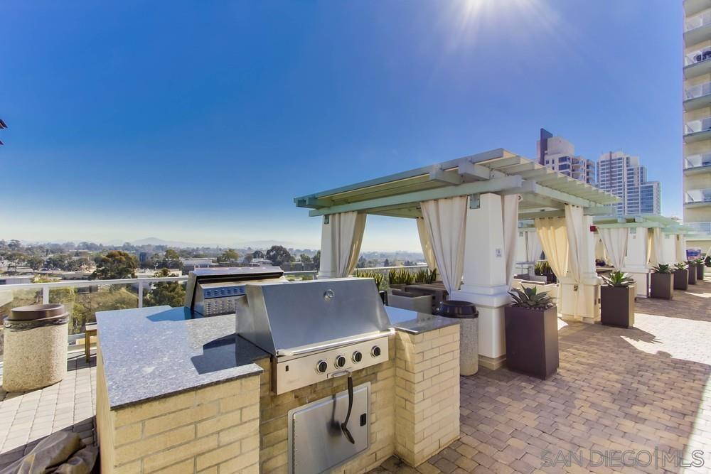Welcome to Discovery at Cortez Hill by Bosa Development—one of downtown San Diego’s best values in full-service high-rise living. Ideally positioned on a quiet, tree-lined street, this east-facing residence is filled with natural light through expansive floor-to-ceiling windows, capturing tranquil views of the surrounding hills and treetops. Offered furnished for a true turnkey experience, this move-in ready home blends comfort and functionality. Continued in supplement below.... Highlights include a spa-inspired soaking tub, cozy gas fireplace, spacious walk-in closet, and a thoughtfully designed second bedroom featuring a built-in office and additional storage. Entertain with ease thanks to the wine fridge and enjoy indoor-outdoor living on the oversized private balcony. Elegant plantation shutters throughout add warmth and timeless style. Perched above downtown, Discovery is a landmark community in the highly desirable Cortez Hill—known for its peaceful atmosphere while remaining just minutes from the energy of the city. You’re only a short walk to Little Italy and Balboa Park, offering the perfect balance of urban convenience and neighborhood charm. Residents enjoy a full suite of resort-style amenities, including a 24-hour attended lobby, on-site management, fitness center, business and conference facilities, and a beautifully designed entertainment lounge. The elevated 10th-floor amenity deck features a heated lap pool, spa, BBQ areas, sauna, and steam rooms with full locker facilities. Secure gated parking, video surveillance, bicycle storage, and a private storage cage add everyday convenience and peace of mind. HOA dues include water, gas, and internet. Additionally, Cortez Hill residents benefit from the City’s highly affordable “F” permit parking program, offering convenient street parking for approximately $15 per year.