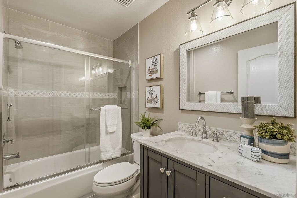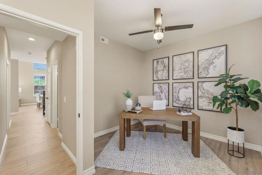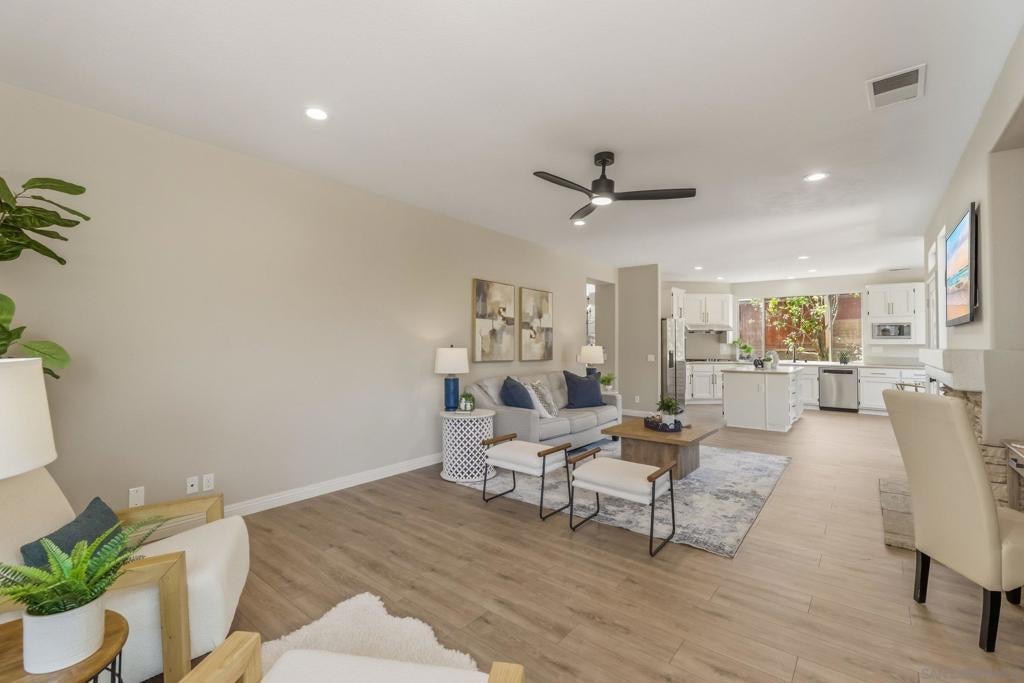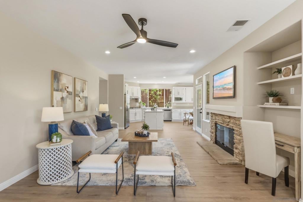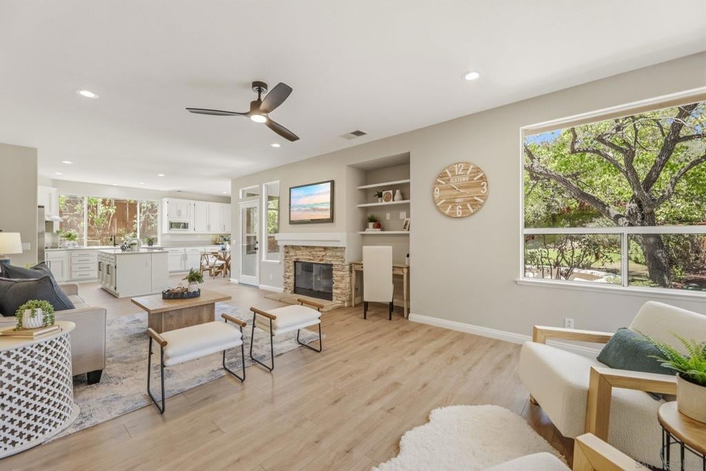 Welcome to your dream home in Park Village — where everyday living feels like a retreat. This stunning home sits on a spacious, private corner lot with fresh flooring, paint, fixtures, and hardware throughout. The soaring two-story great room, chef's kitchen, stone fireplace, and sun-drenched backyard create spaces made for both entertaining and unwinding. A main-floor optional bedroom/office and full bath add flexibility. Paid solar keeps costs low. And the best part? You're steps from the trails of Los Peñasquitos Canyon Preserve — San Diego's most beloved open space. This is Park Village living at its finest. Home Upgrades: Paid Solar: 16 panels Added unpermitted downstairs office 2022, the bedroom is an additional approx 130sqft from the listed sqft (Builder option to add the bedroom in this model). Upgraded downstairs bath and upstairs kids bath 2022. New blinds throughout, exterior home painting- all done between 2022-2024 . Interior painted and new water heater 2026. New Luxury Vinyl Plank flooring 2026 New carpet 2026. New light fixtures in entry, dining room and primary bath 2026. New ceiling fan with light in family room 2026. New interior door handles 2026. New kitchen, primary bathroom and laundry cabinet hardware 2026. Schools: Park Village Elementary, Mesa Verde Middle, Westview High. No HOA. No Mello Roos
