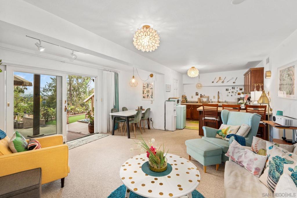Perched atop a serene hillside on nearly 1/2 acre, this beautifully updated La Mesa Village residence captures sweeping southerly views of distant mountains and rolling neighborhood vistas. A striking first impression is created by the home’s curated curb appeal, where a vibrant, mature succulent landscape and statement entry door set a refined tone. Inside, rich hardwood floors, elegant coved ceilings, and expansive living spaces are thoughtfully oriented to showcase the views at every turn. The inviting living and dining areas are anchored by a charming fireplace, while the designer kitchen seamlessly connects with abundant custom cabinetry, generous prep surfaces, and a complementary backsplash. Just beyond, a covered, elevated deck offers an ideal setting for al fresco dining or quiet sunset moments overlooking the tranquil grounds below, where shaded seating areas and whimsical garden spaces invite relaxation. The home continues with three spacious, light-filled bedrooms, while the attached two-car garage offers exceptional functionality with built-in storage, a dedicated workroom with cabinetry and sink, and an additional half bath. On the lower level, a private one-bedroom guest suite with full kitchen and bath presents a versatile opportunity for multigenerational living, a home office, or supplemental income. Additional highlights of this 19,822 sq. ft lot property include central heating and air conditioning, dual-pane windows, whole-home water filtration, garage attic storage with pull down ladder and 6 Ring camera system. Ideally located just moments from the charm of La Mesa Village, this residence enjoys exceptional walkability to beloved local shops, dining, coffee houses, and the weekly farmers market, as well as nearby Collier Park with its tennis courts and recreation areas—offering a rare blend of hillside privacy and vibrant village living. The garden includes 3 avocado trees, 2 jacarandas, 1 lemon tree, 2 lime trees, 2 mandarin tree, 1 macadamia tree, 1 pepper tree, 1 Japanese giant tree, 2 pines, 1 very large plumeria, 1 magnolia, and 1 olive tree. Additional architectural plans included for future ADU build (3 different options), plus plans for the expansion of the main house on the left, rear and right sides! This is a true must see!