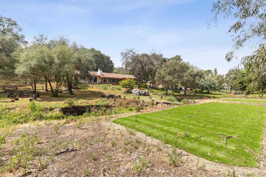 A rare opportunity to own a private estate in the highly sought after Green Valley area of Poway. Set on 1.72 acres, this single level 4 bed, 3 bath home offers elevated living surrounded by nature, space, and total privacy. A year round creek runs through the property, complete with a private bridge leading to an expansive turf area, and backing to protected open space that creates a truly serene setting. The grounds are designed for both luxury and lifestyle, featuring a zipline, disc golf setup, gazebo, and multiple areas to relax or entertain. Inside, vaulted ceilings throughout create a bright and open feel, complemented by new flooring and paint in 2024, a beautifully renovated guest bathroom, modern ceiling fans, and two energy efficient HVAC systems installed in 2023 and 2024. The home also features a private attached ADU style space with its own entrance, kitchen area, washer and dryer, mini split, and separate backyard space, offering flexibility for extended living or an easy conversion back to a traditional 4th bedroom and bathroom. Located just minutes from Lake Poway, top rated schools, and endless outdoor recreation, this is a standout property offering privacy, versatility, and a true lifestyle setting!